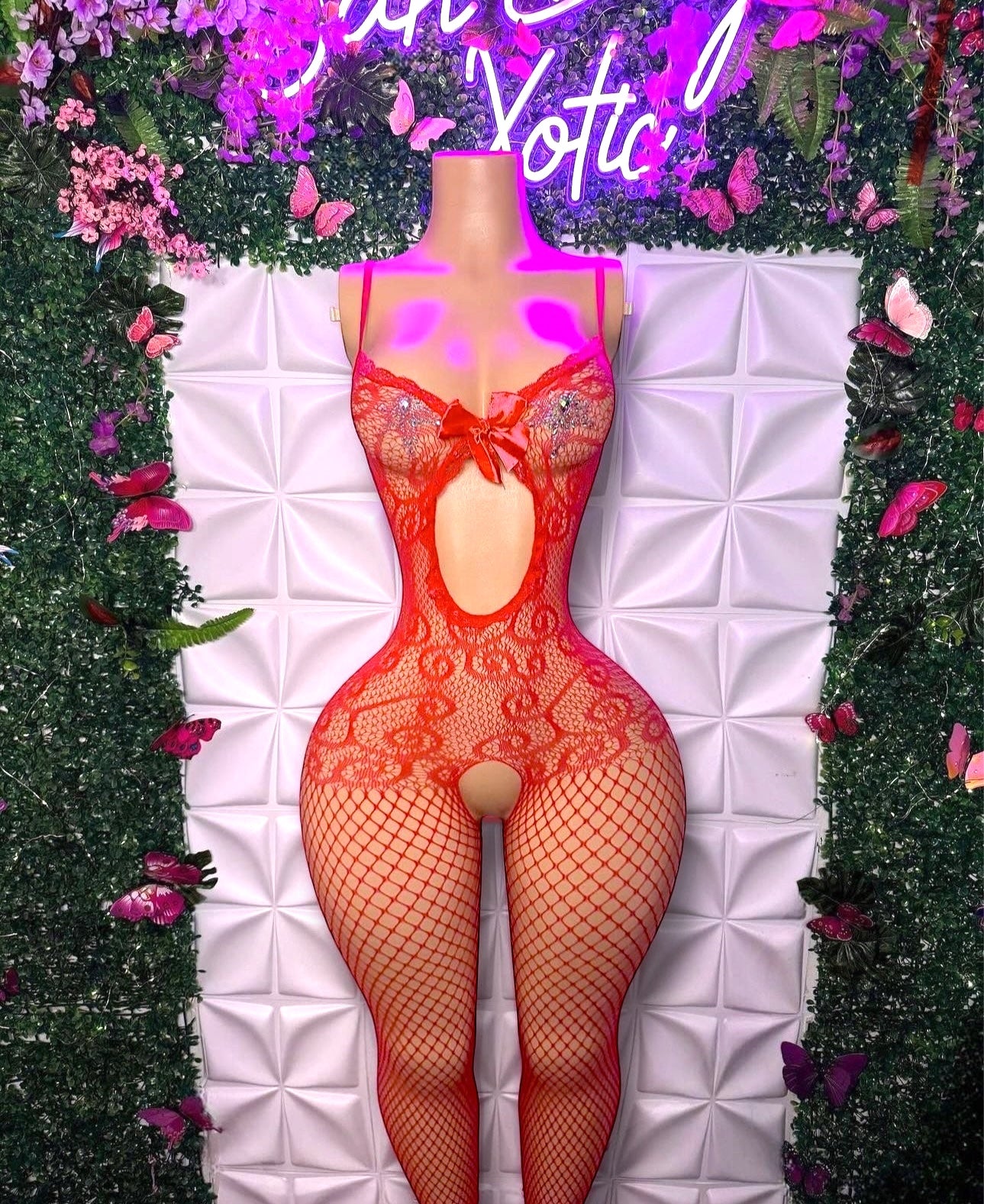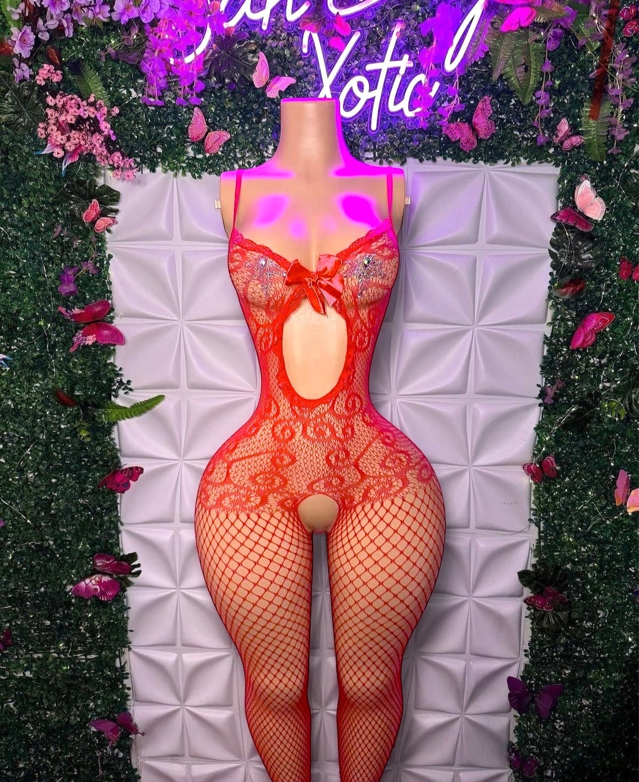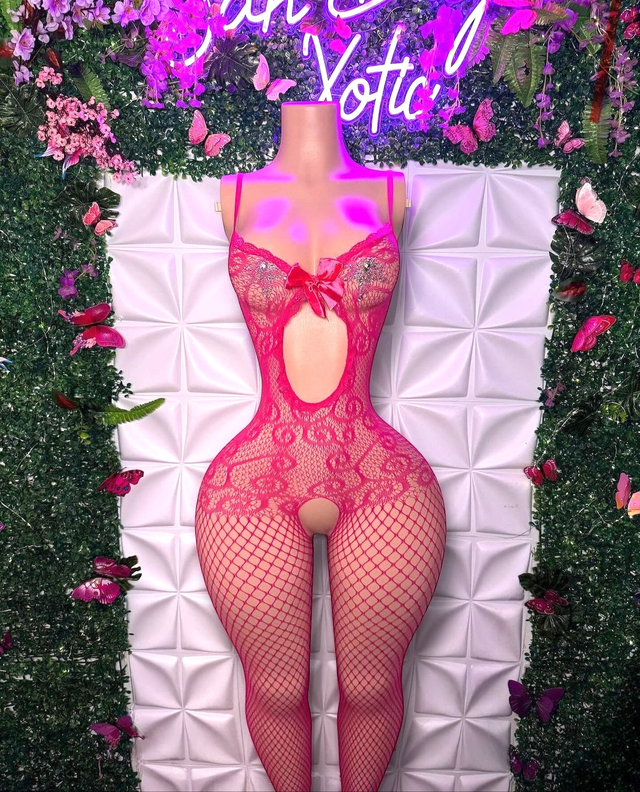 Babydoll Fishnet Bodystocking with Bow Fits XS-L
