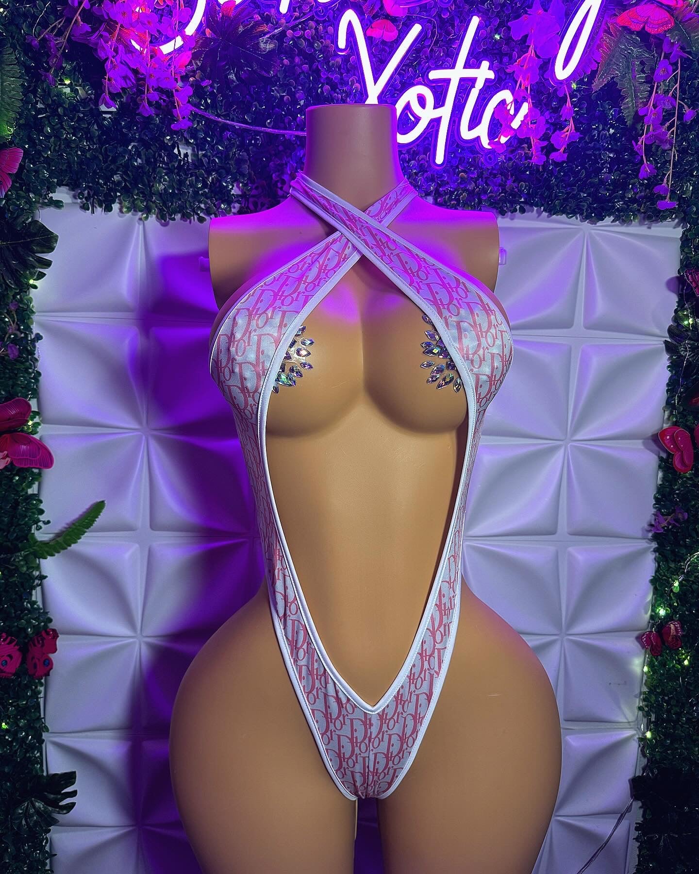 Pink Print Baby Pink and White One Piece One Size Fits S-L