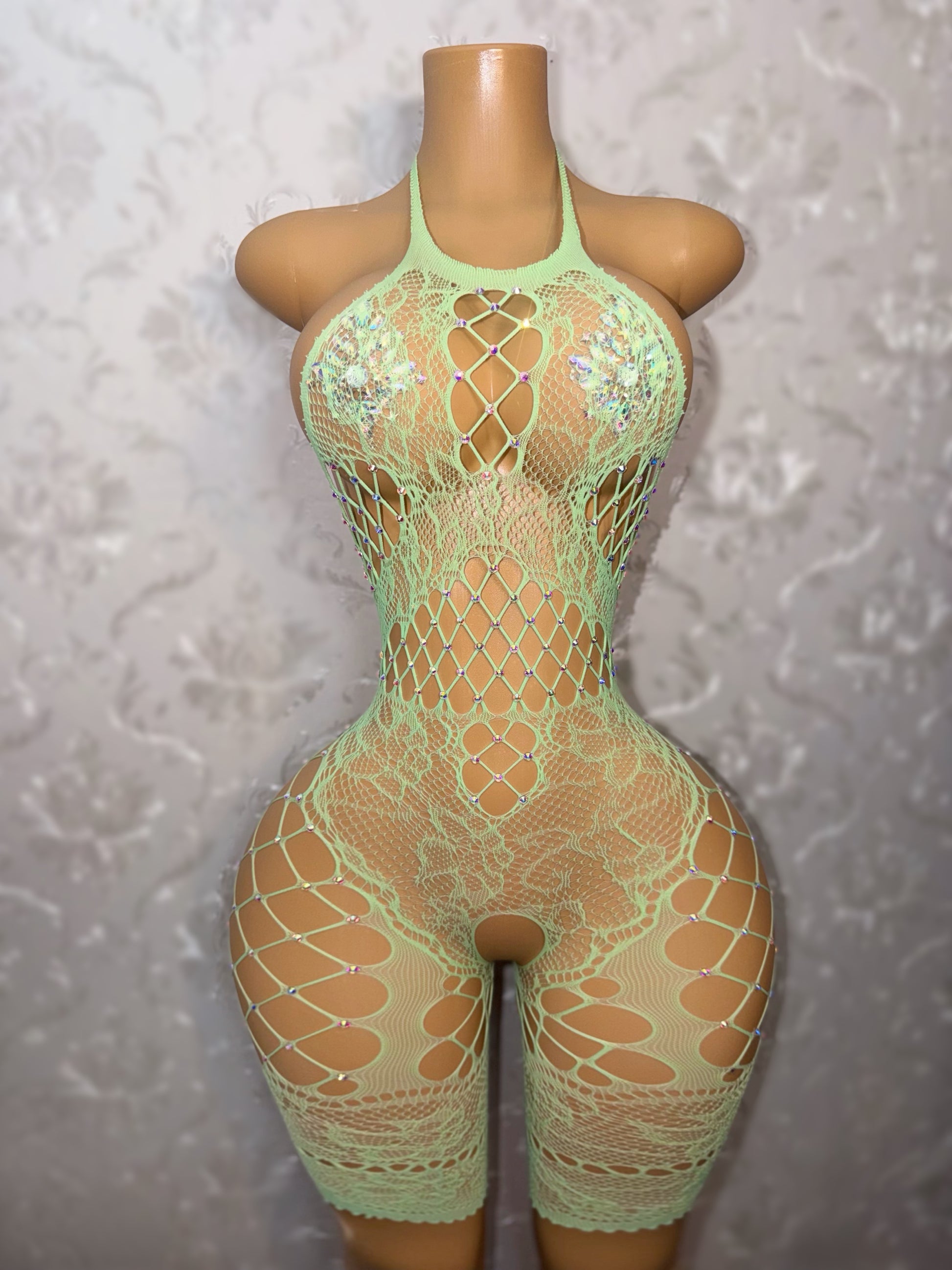 Britney Spearmint Mint Green 1 OF 1 Fishnet Romper Fits XS-L