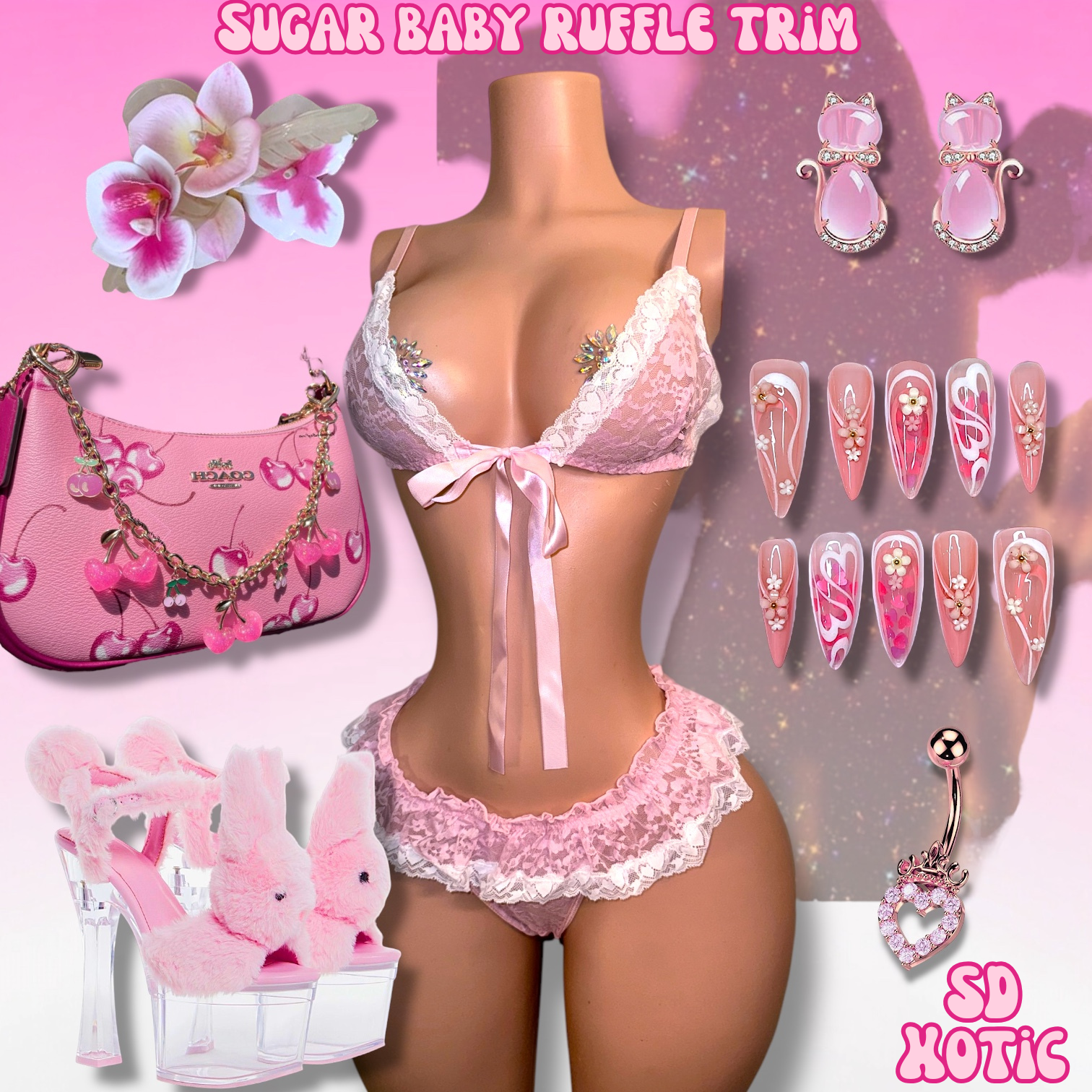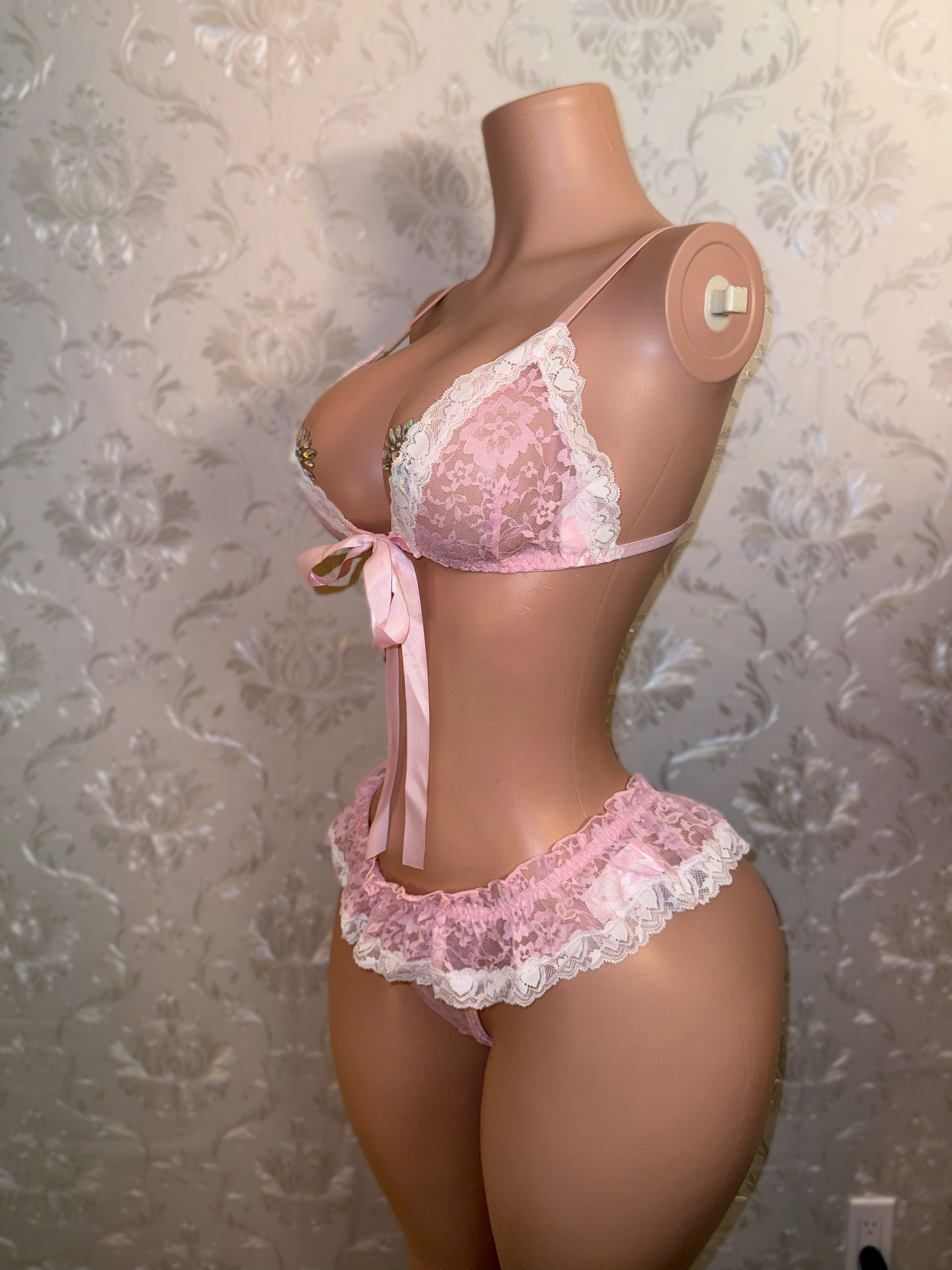 Sugar Baby Ruffle Trim 2 Piece Lace Bikini with Micro Skirt Thong