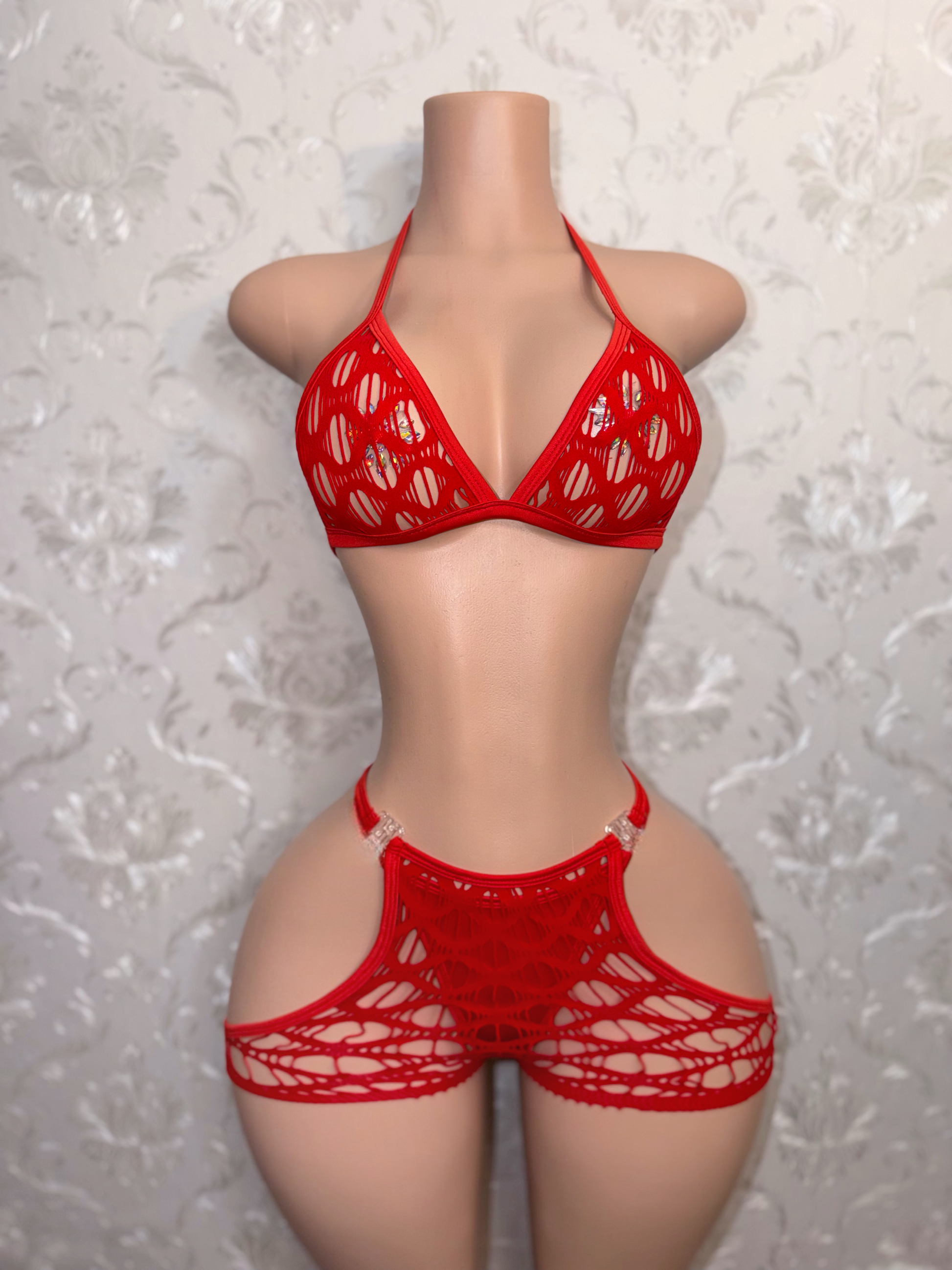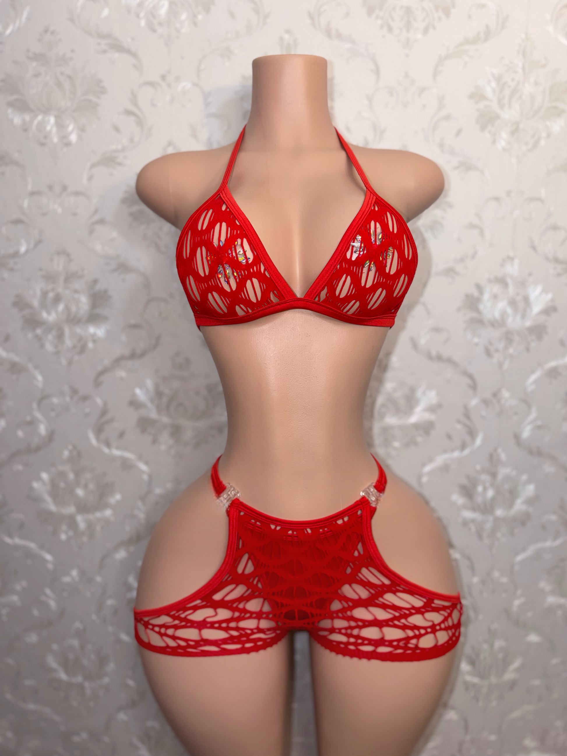 Desiree Plain Cutout Fishnet Clasp Chaps Shorts Set Fits S-L