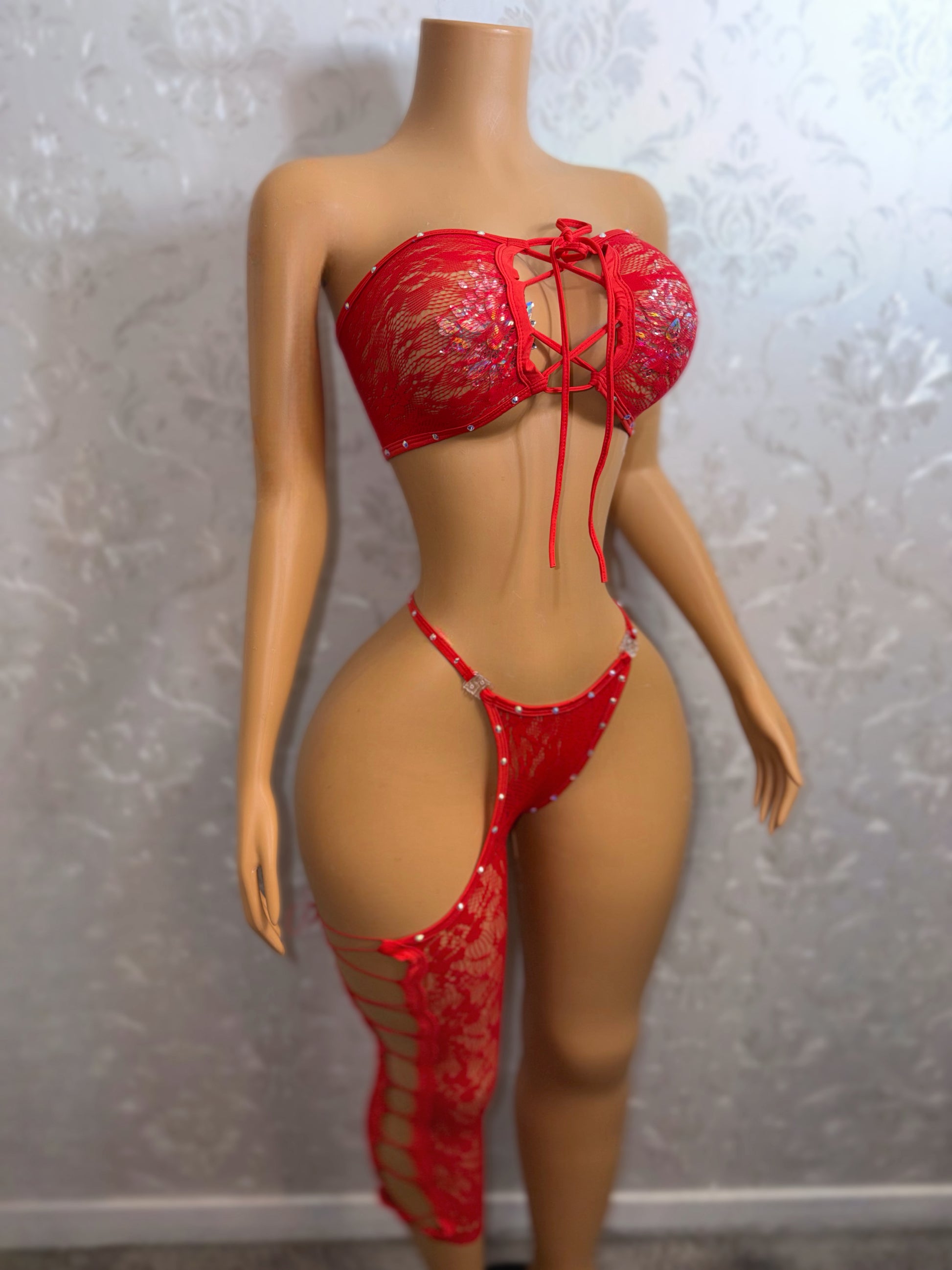Highly Favored Asymmetrical Cut Out Fishnet Chaps Set Fits S-L