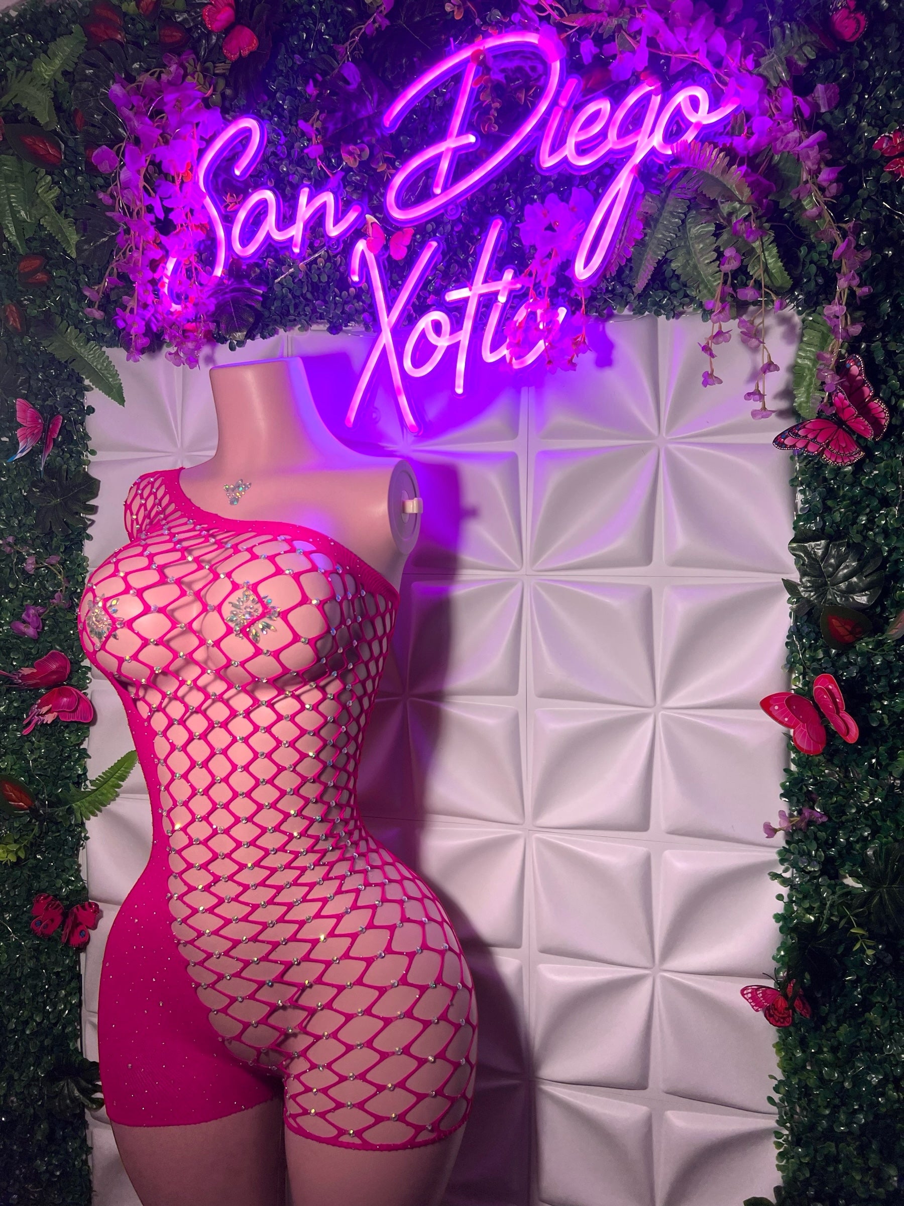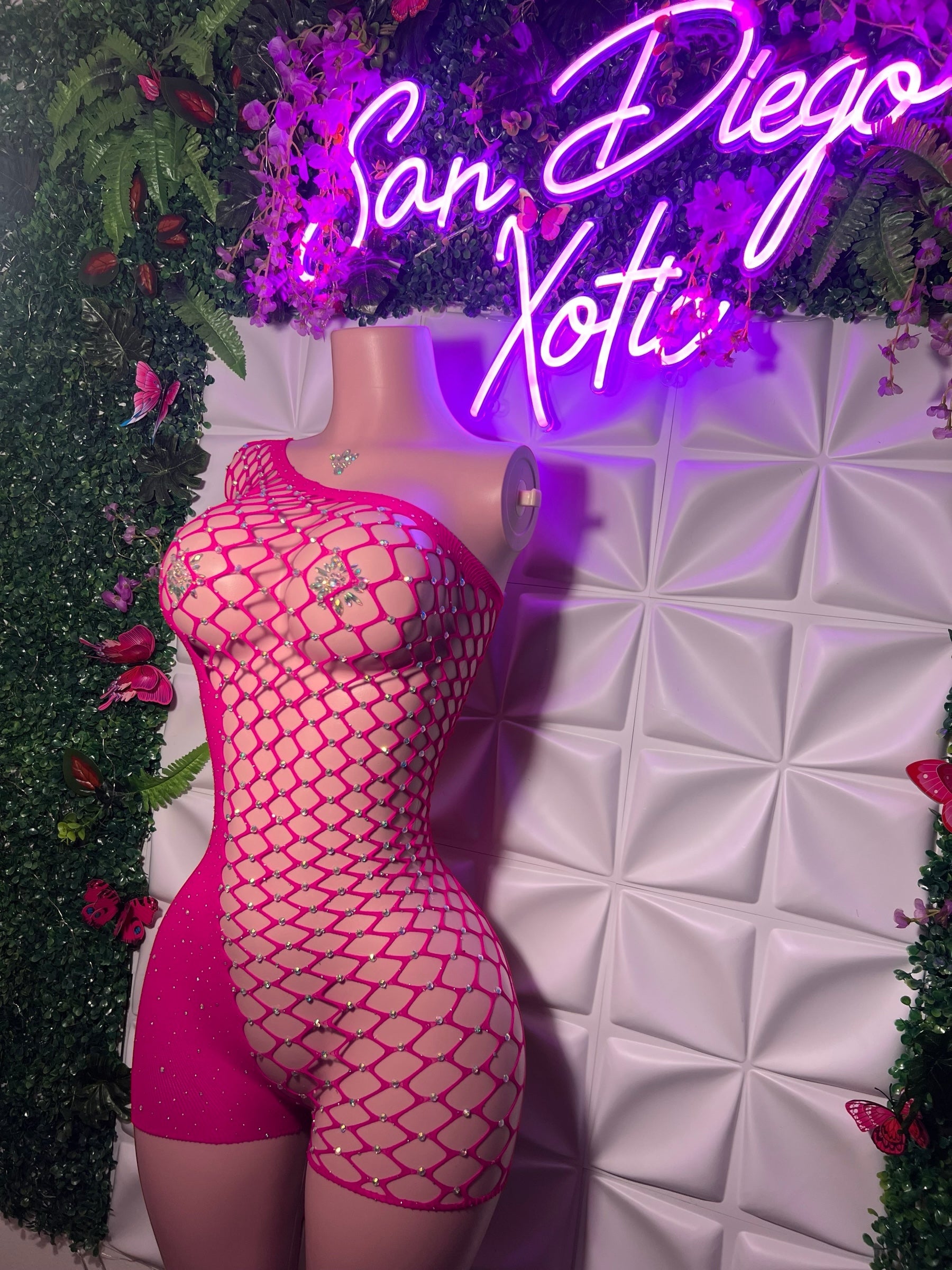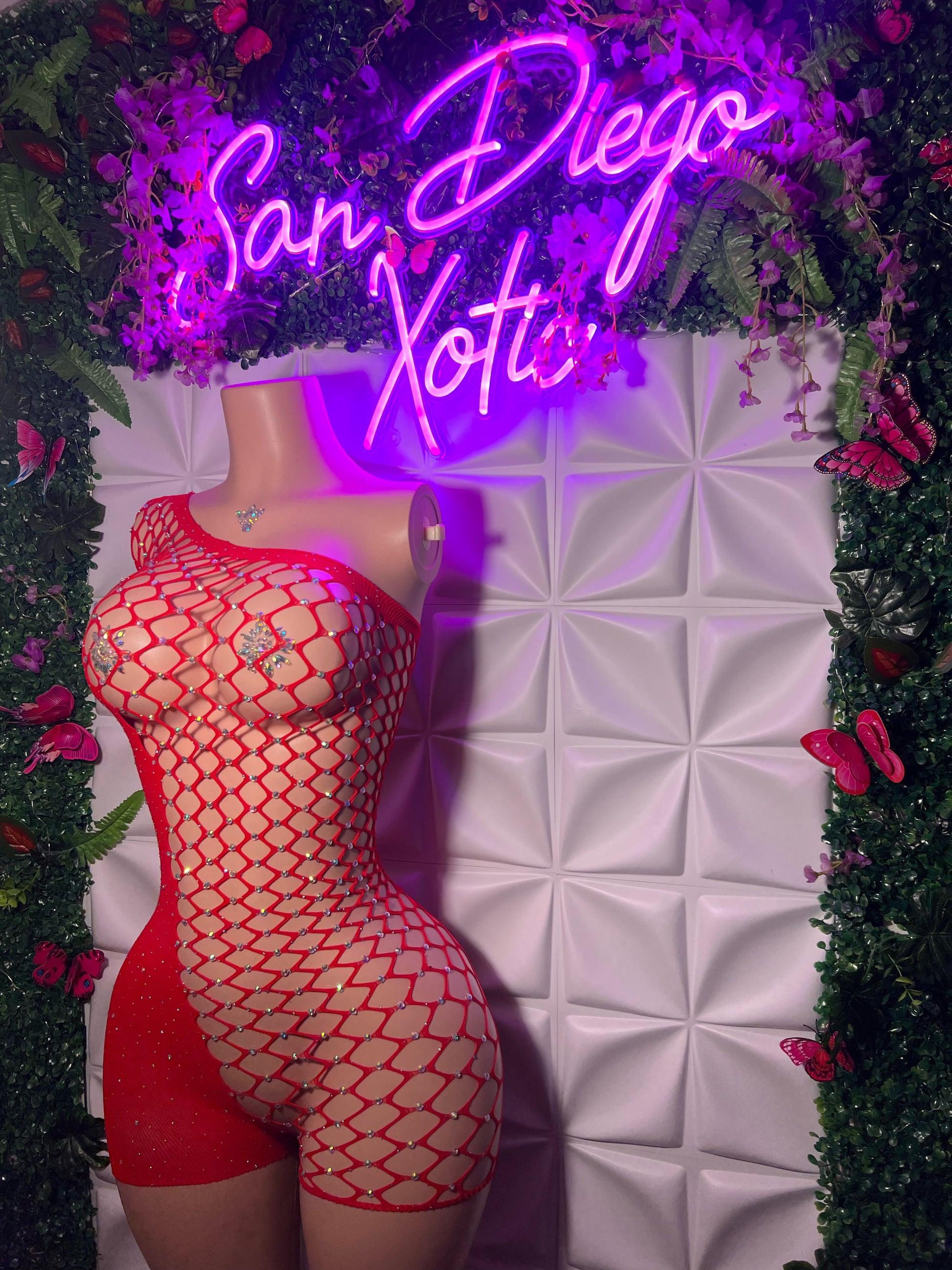 Holiday Bedazzled Romper Asymmetrical Fishnet Fits XS-L