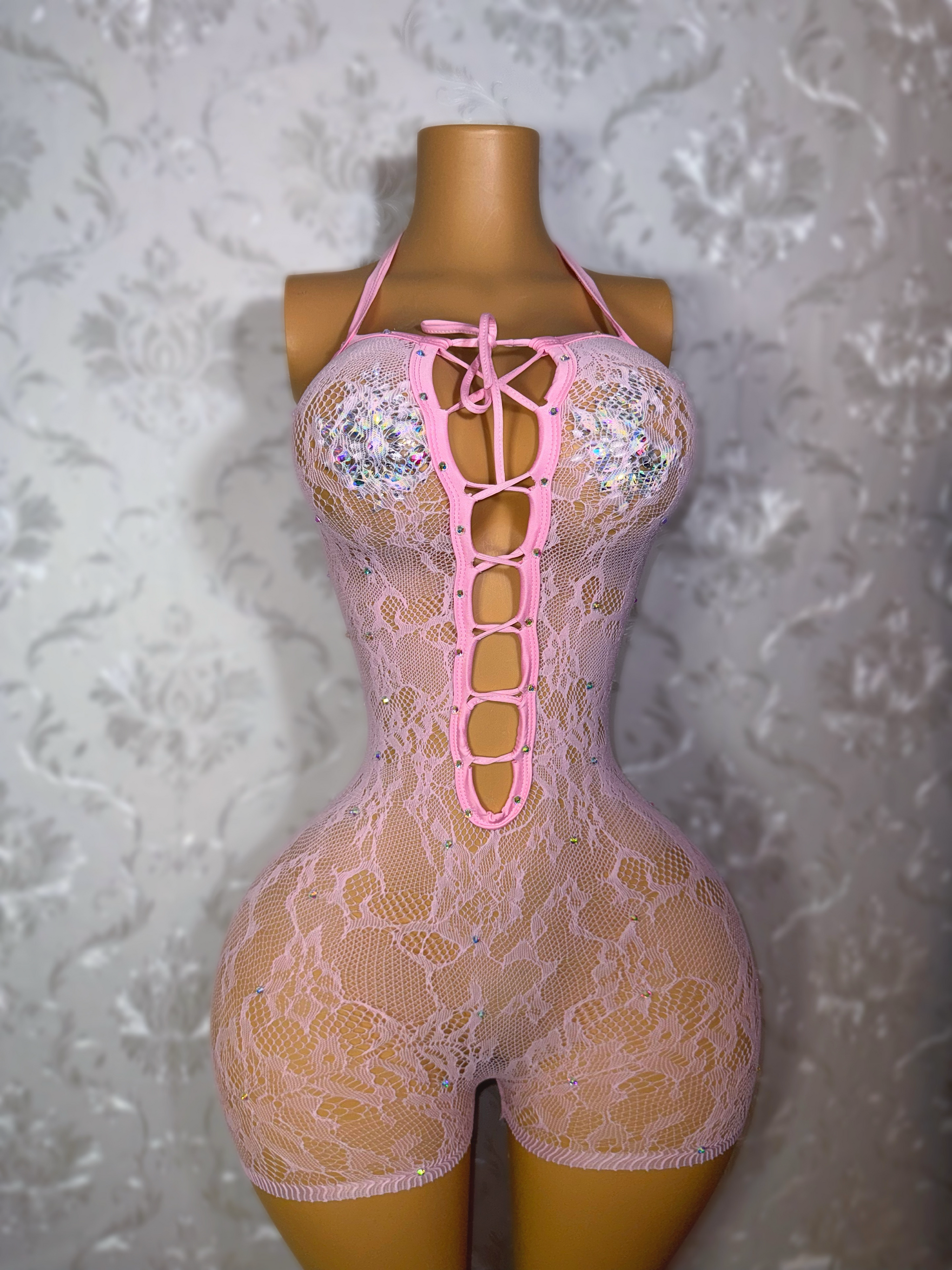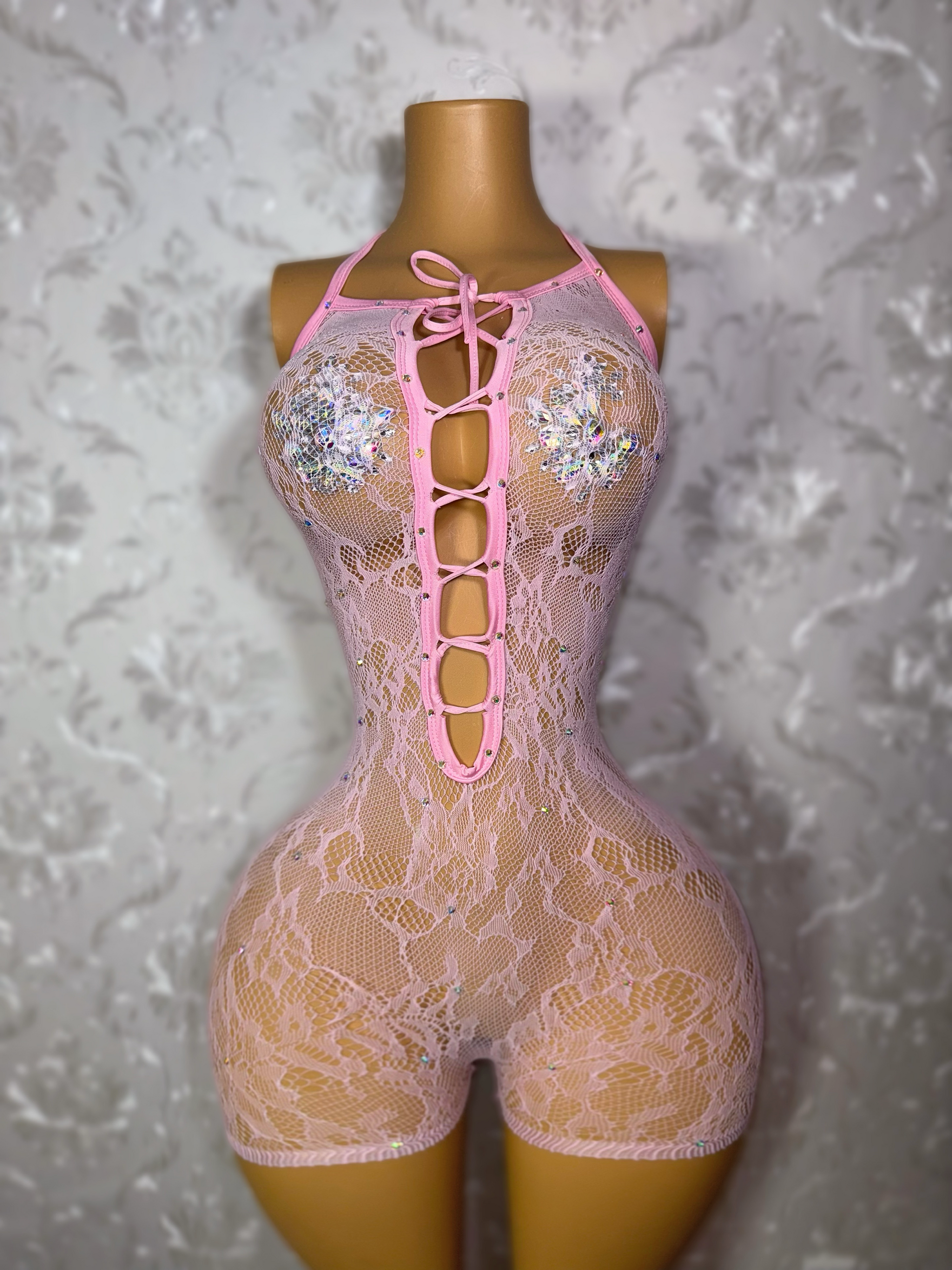 Hoodcess Lace Fishnet Backless Romper Fits XS-M