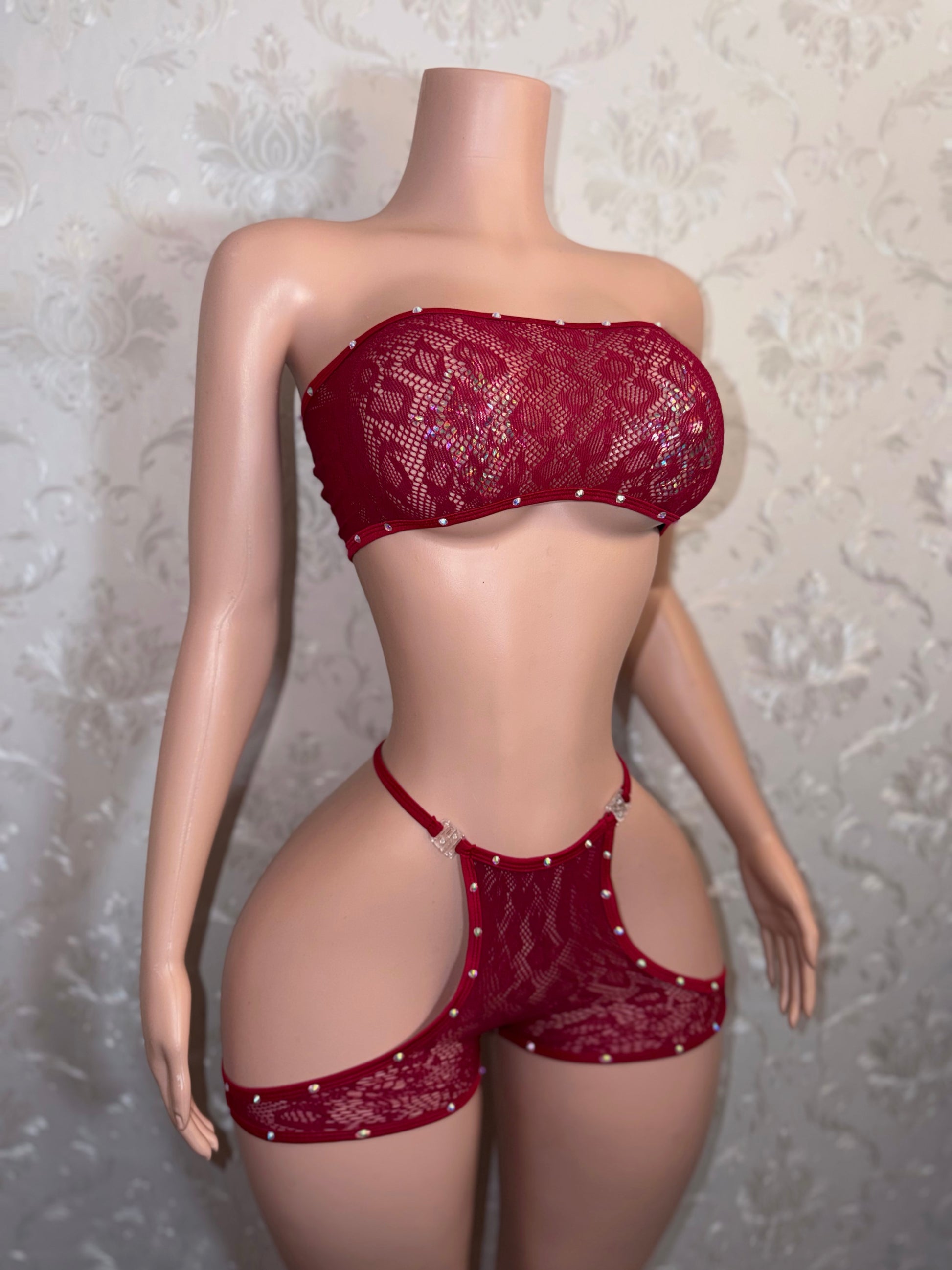 Jacqueline Cut Out Fishnet Shorts Set Fits S-L