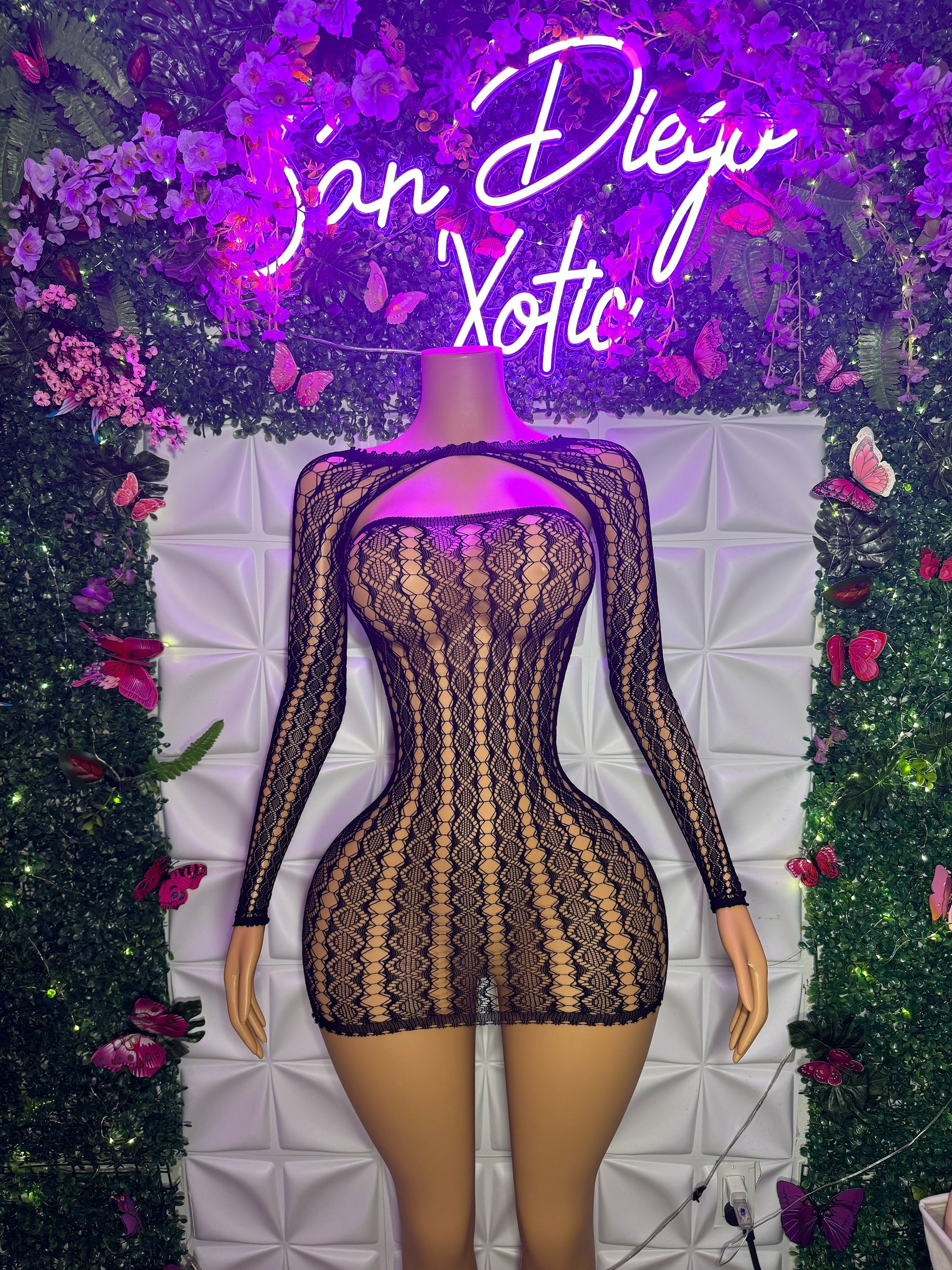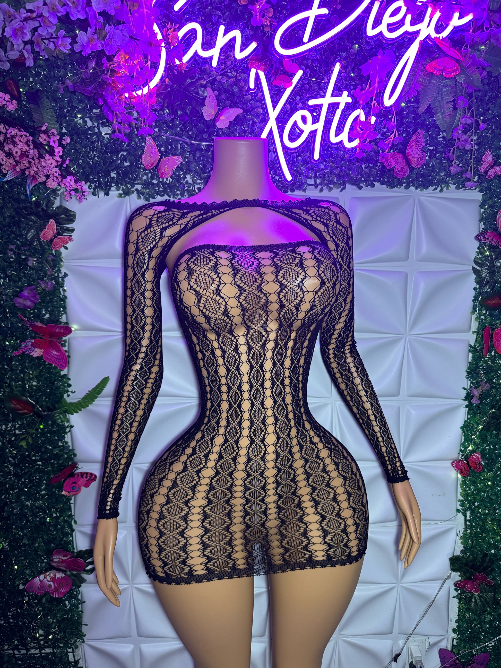 Lyrica 2 Piece Lace Fishnet Dress & Long Sleeve Shawl Fits XS-L