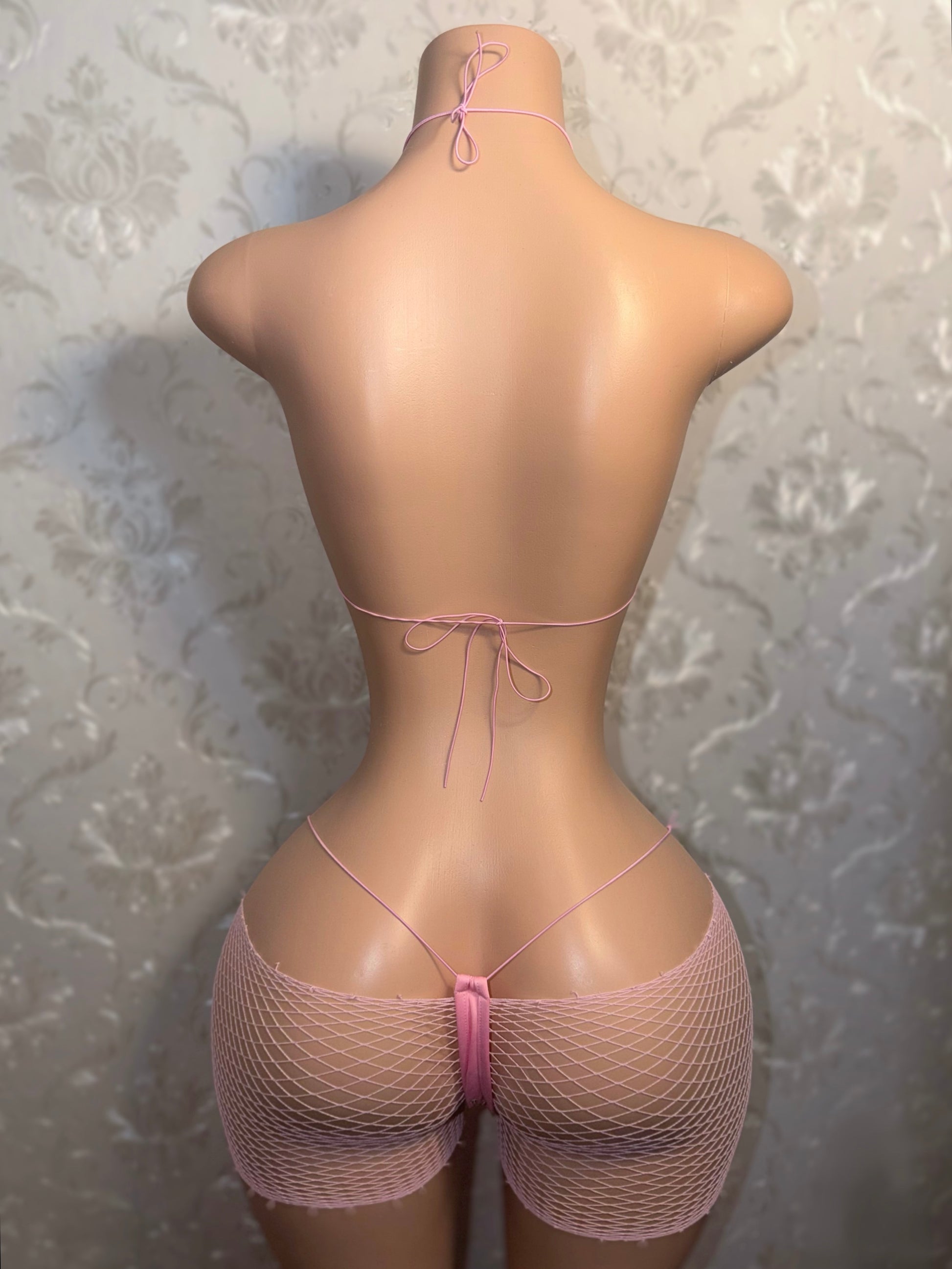 Martina 3 Piece Bikini and Cutoff Fishnet Shorts Fits XS-L