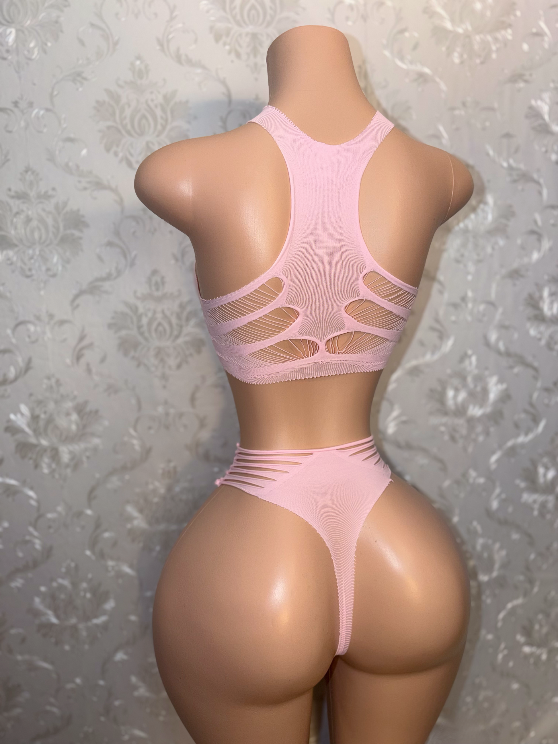 Misty 2 Piece Mesh Bra and Thong Set Fits XS-L