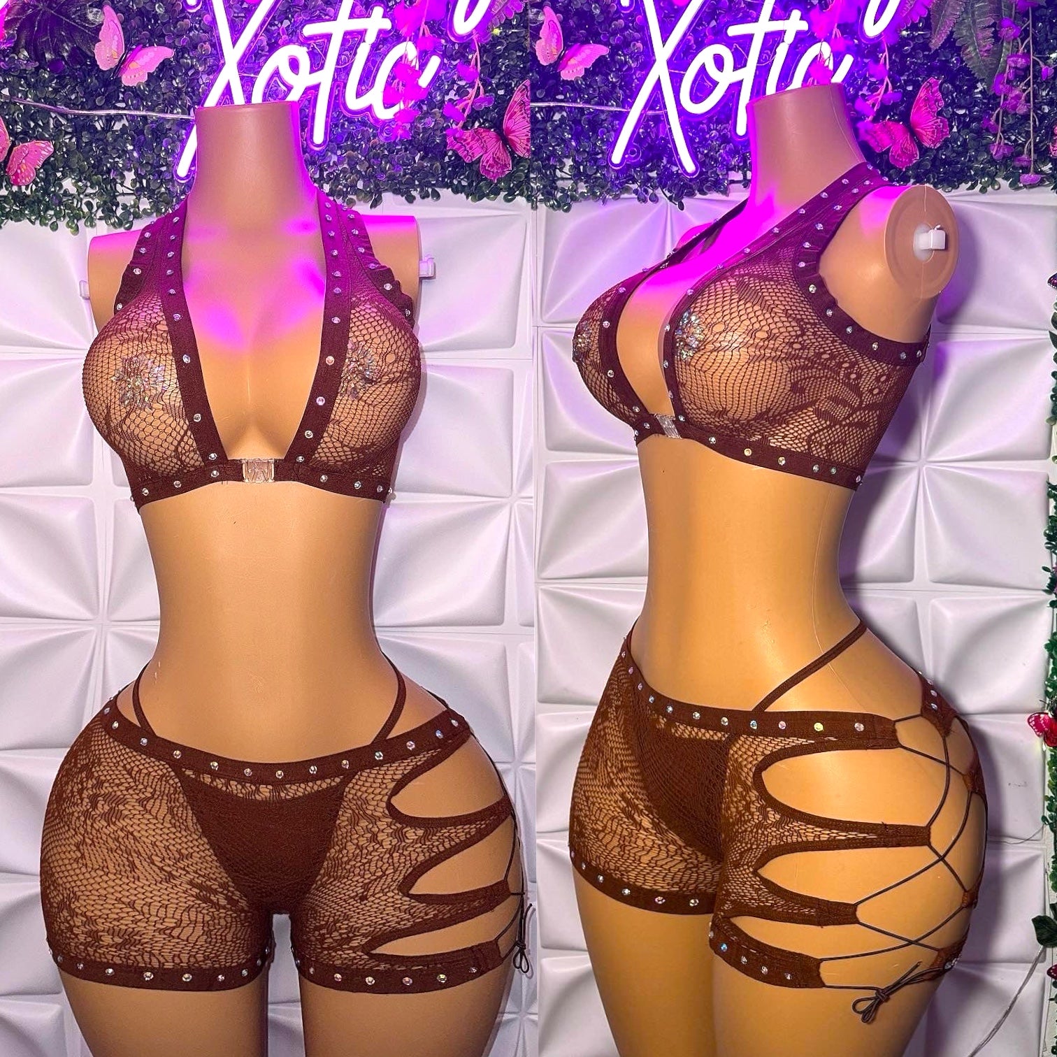 Ms. Daisy 3 Piece Lace Shorts Set With Thong Fits S-XL