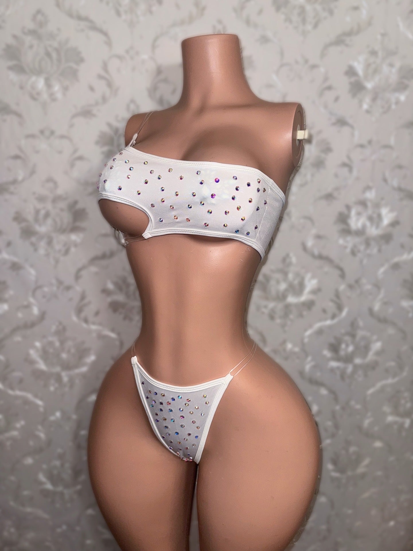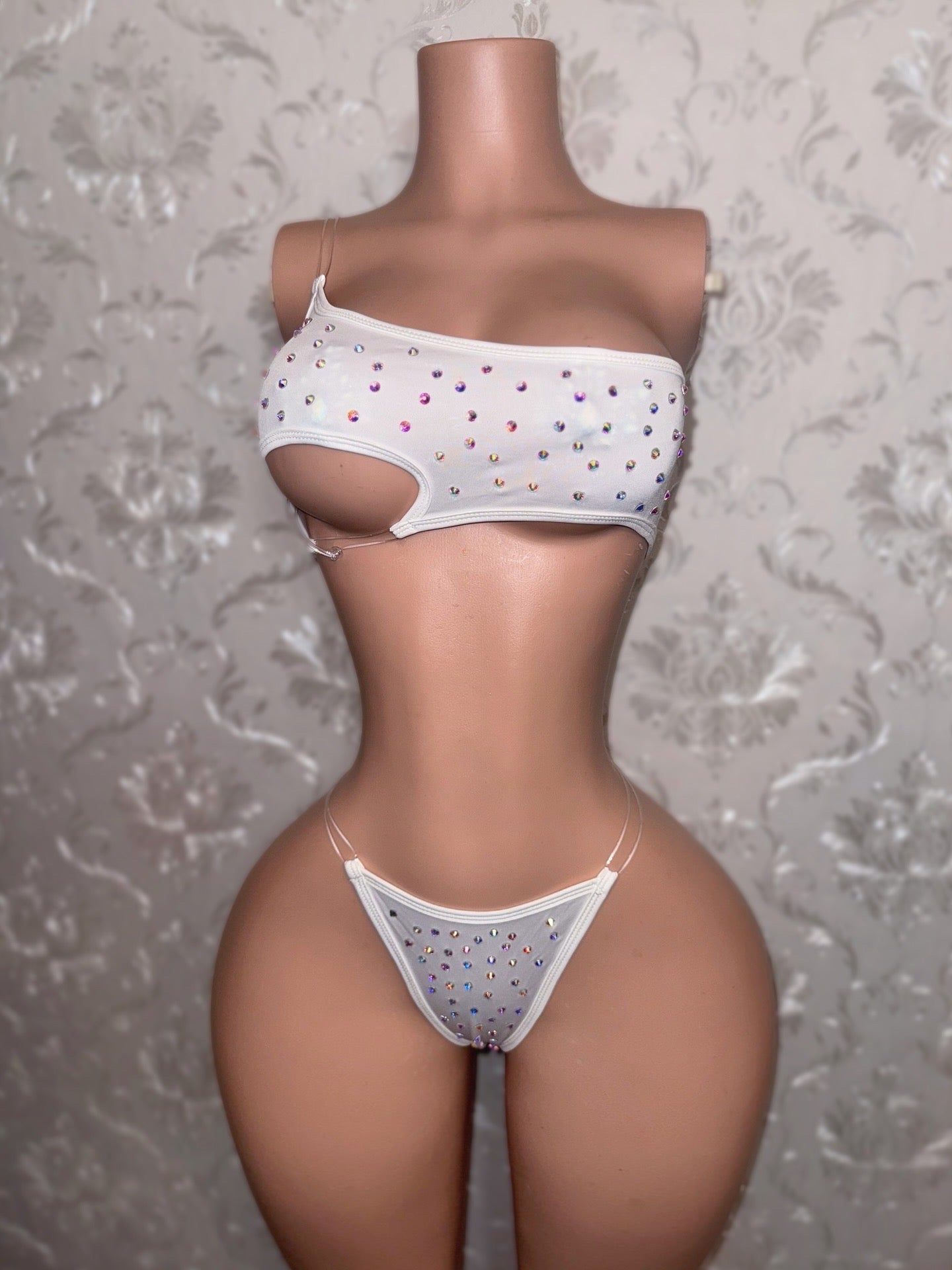 Mylk Asymmetrical 4 Piece Set With Fishnet Micro Skirt & Shawl Fits S-L