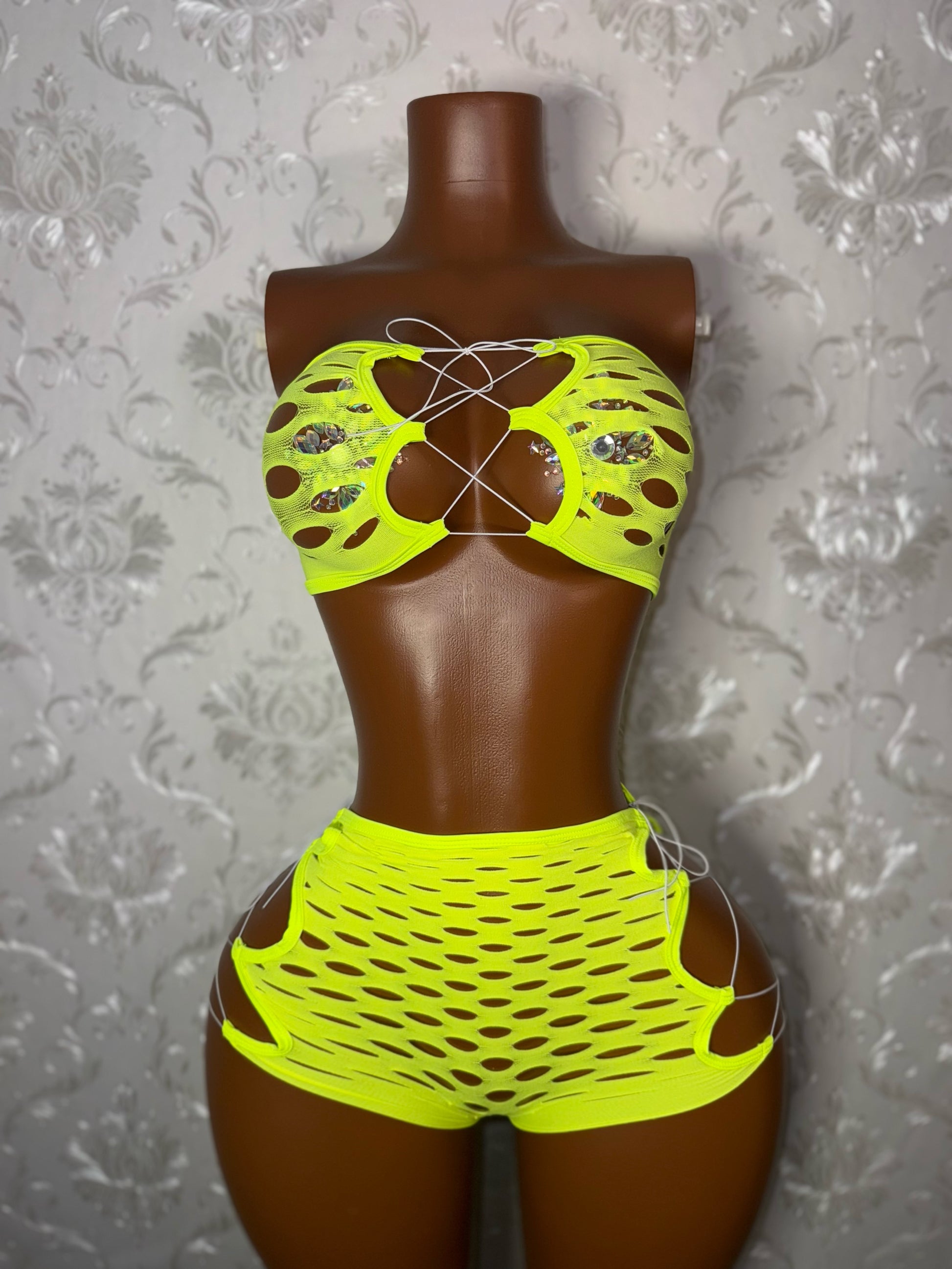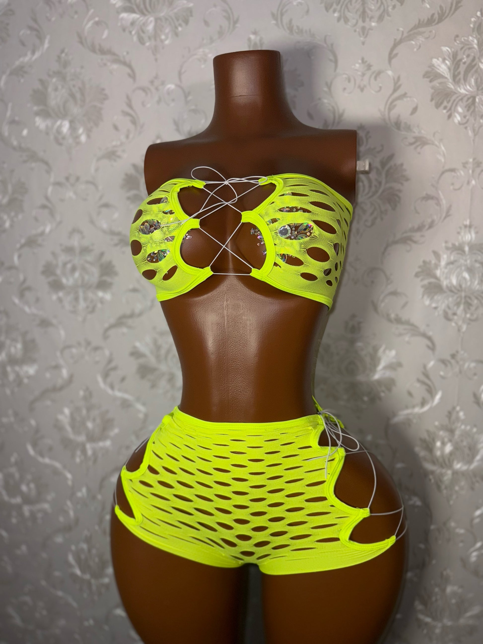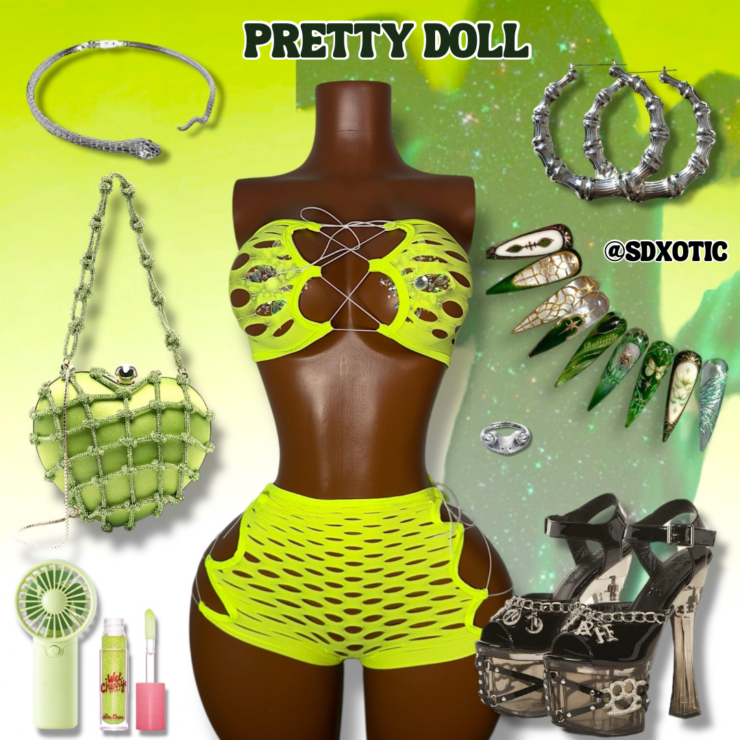 Pretty Doll 2 Piece Fishnet Shorts Set Fits XS-L