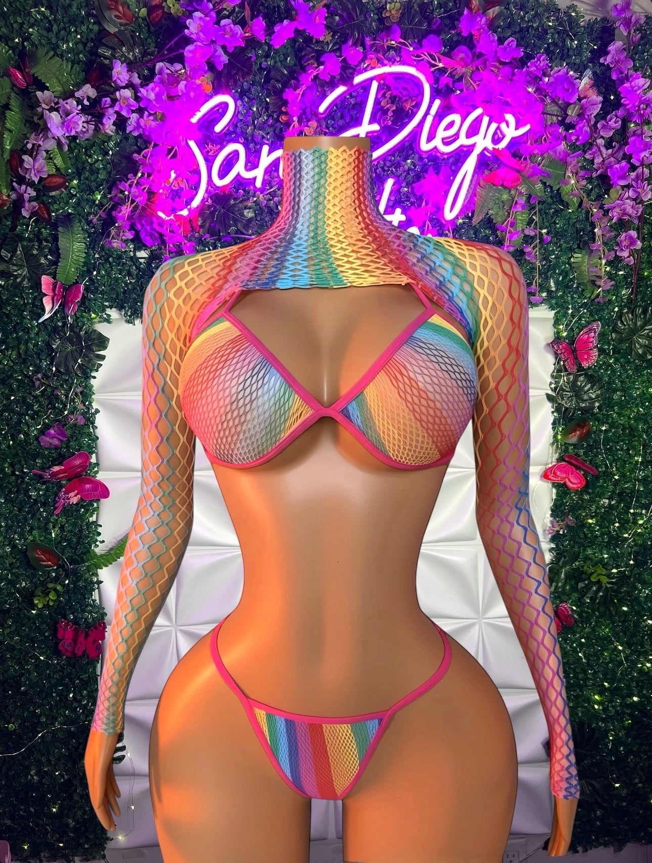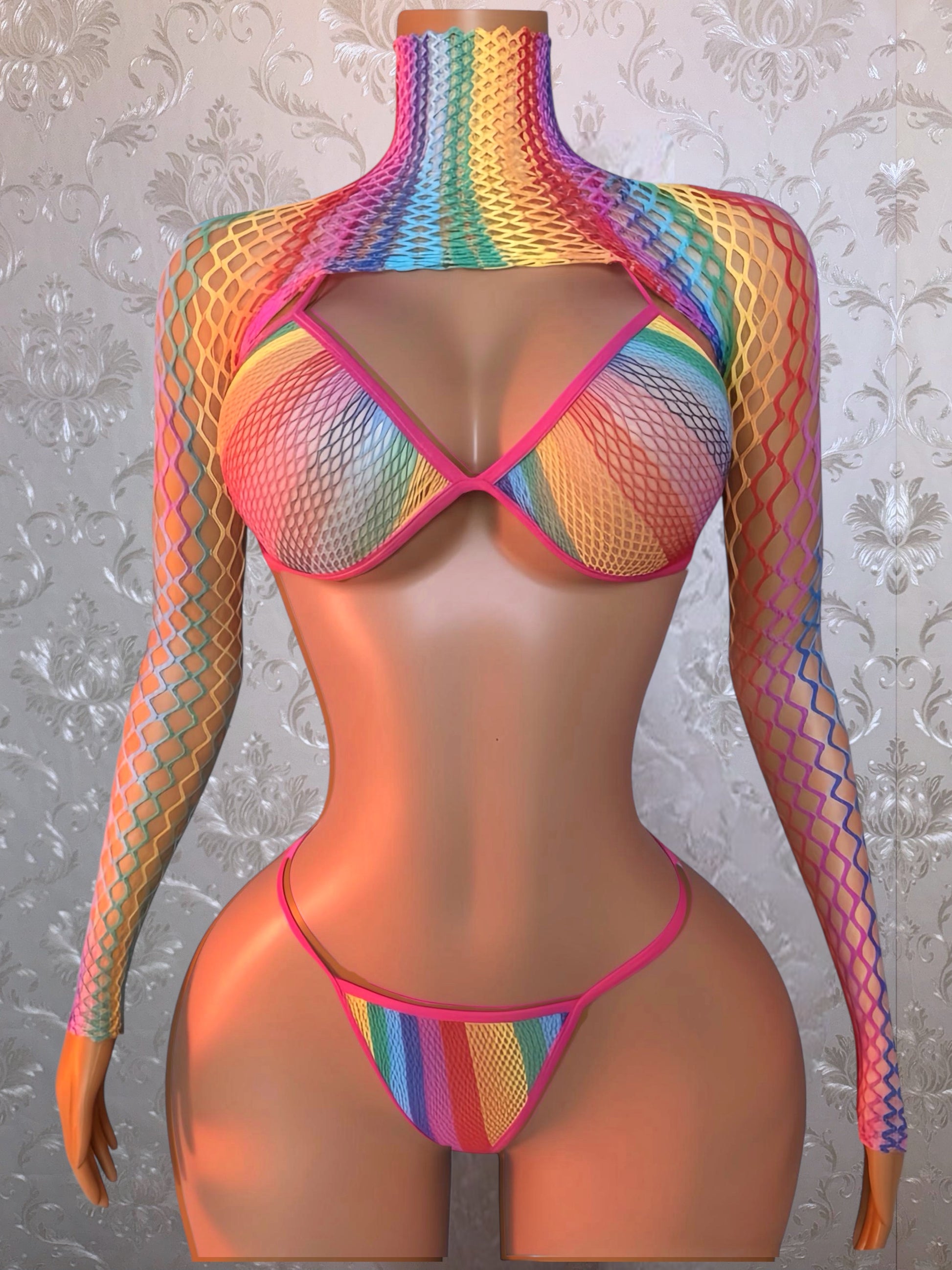 Rainbow Meshkini — 3 Piece Set with Shawl Fits XS-L