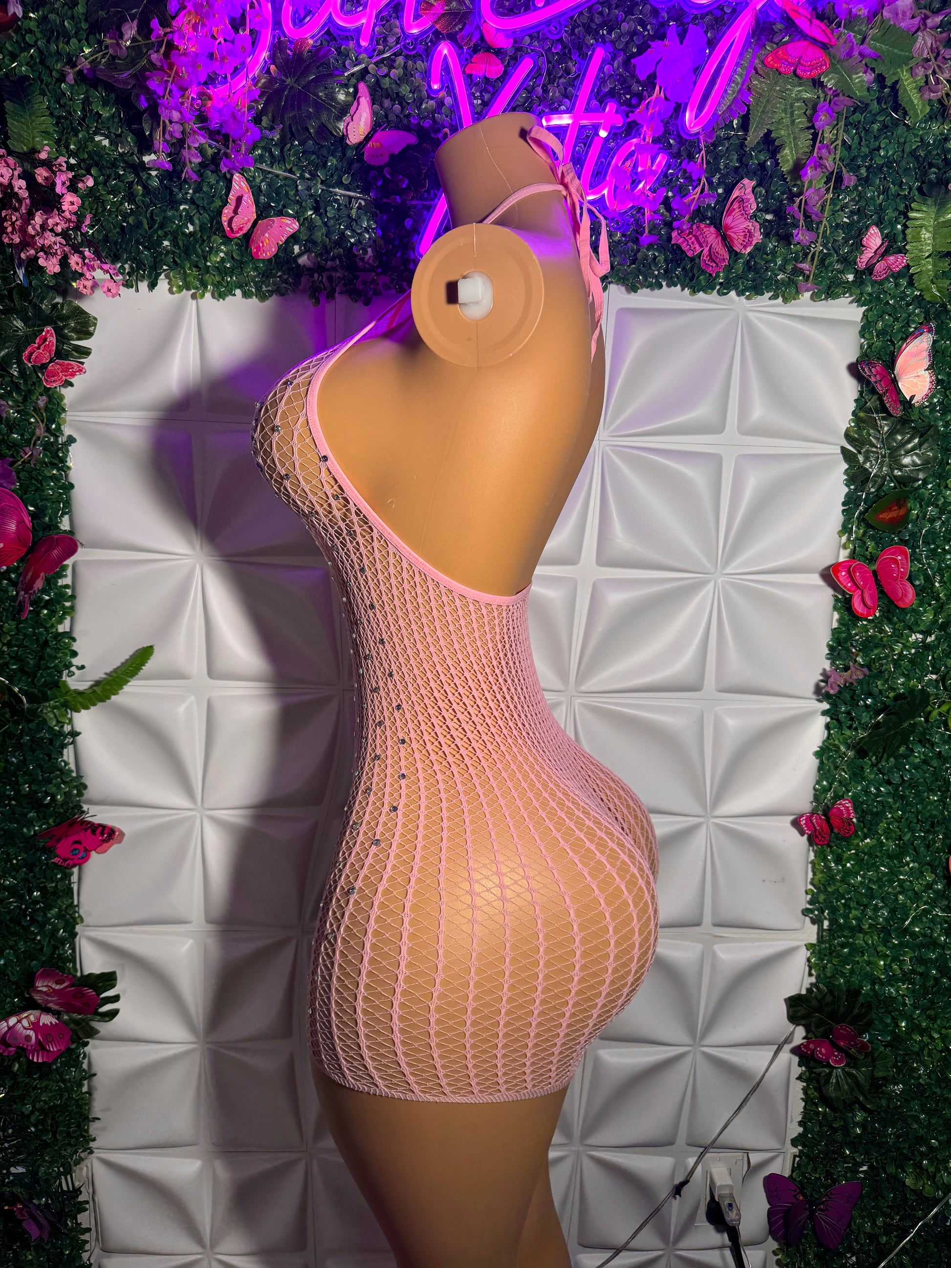 Serena Halter Fishnet Romper with Rhinestones Fits XS-XL