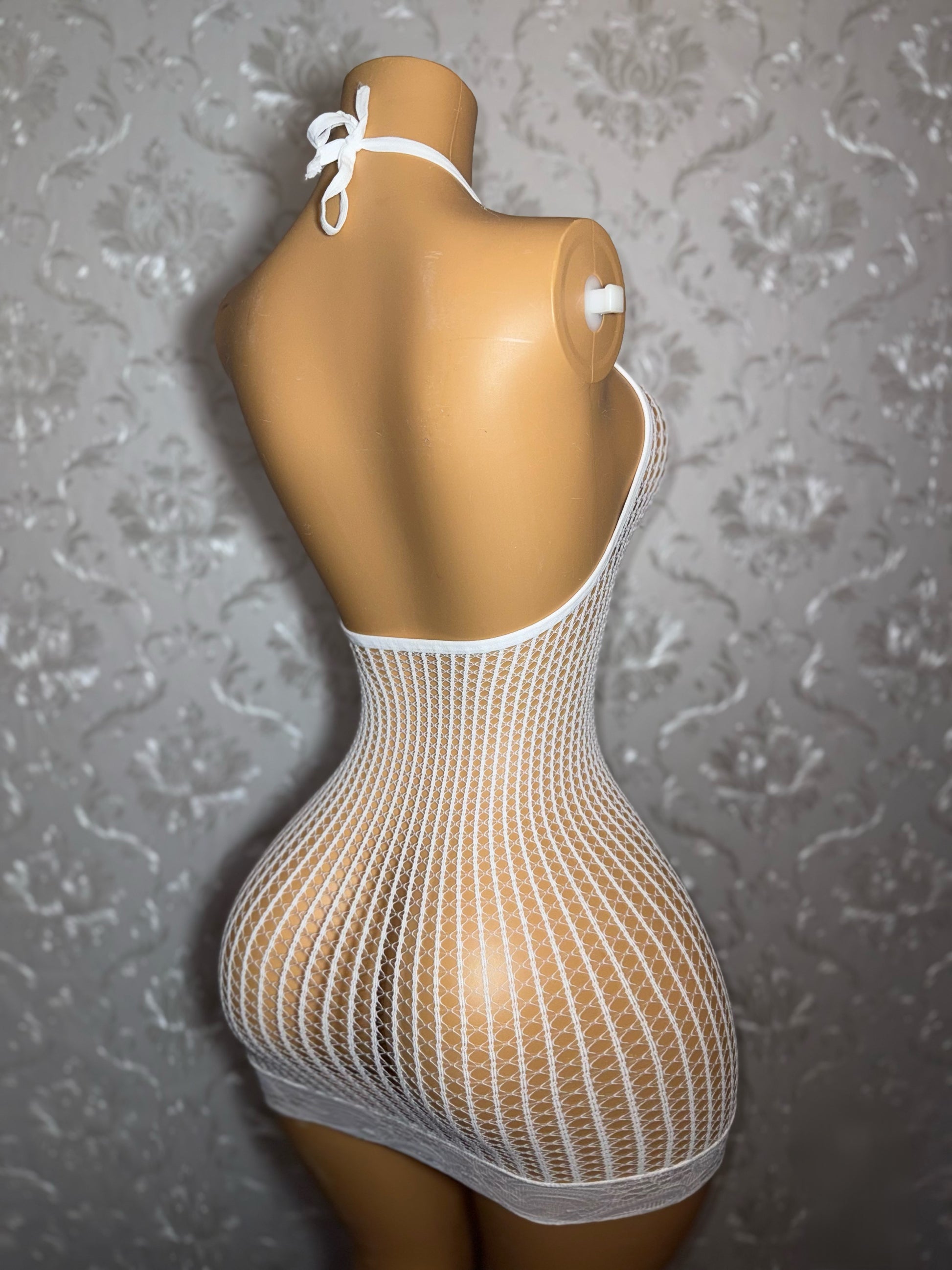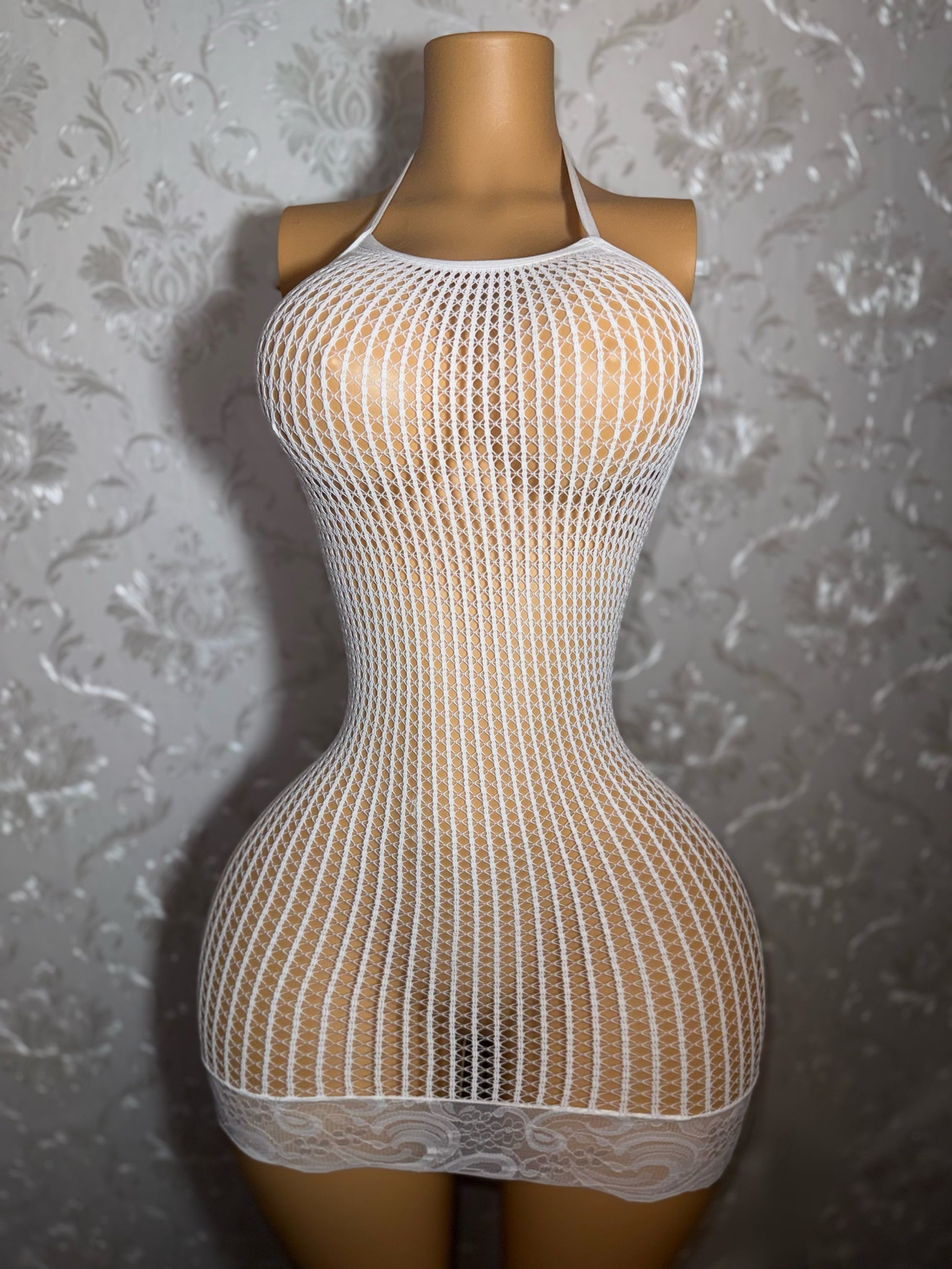 Serena Halter Lace Fishnet Hem Dress Fits XS-XL
