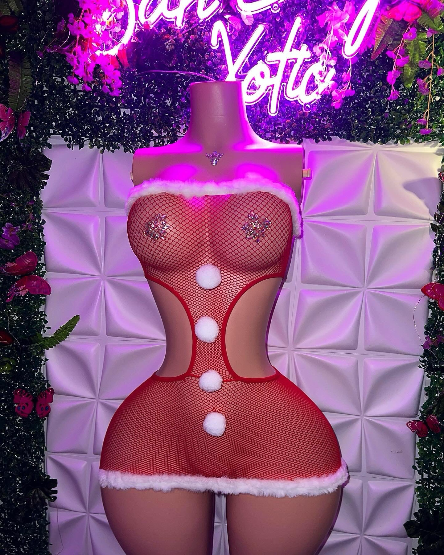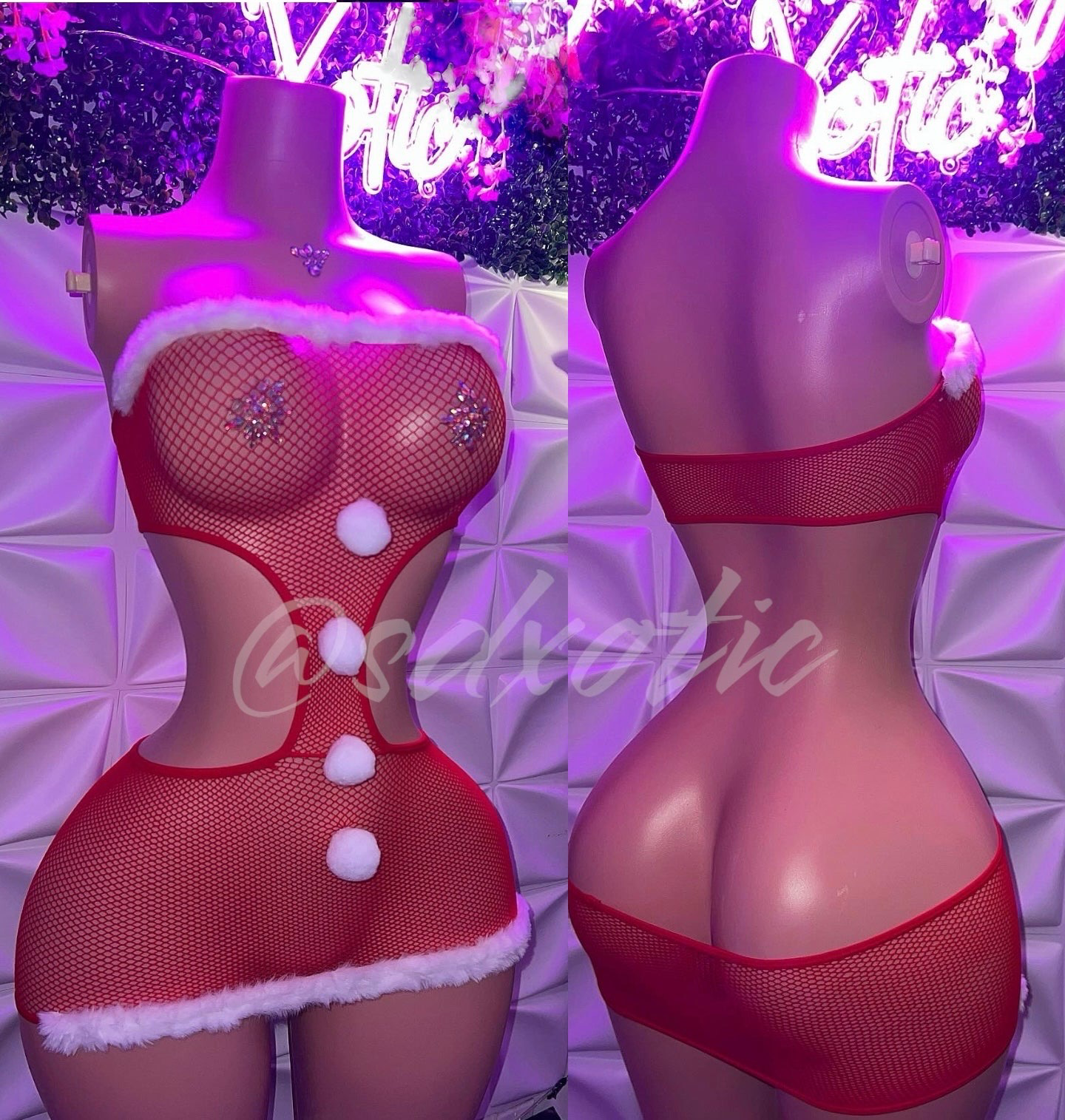 Slay Bells Sexy Fur Trim Fishnet Mini Dress Fits XS-L