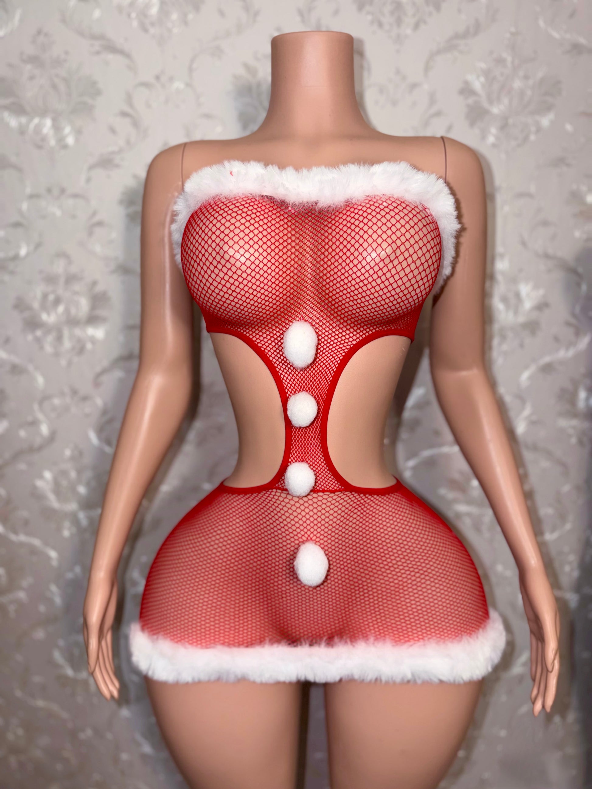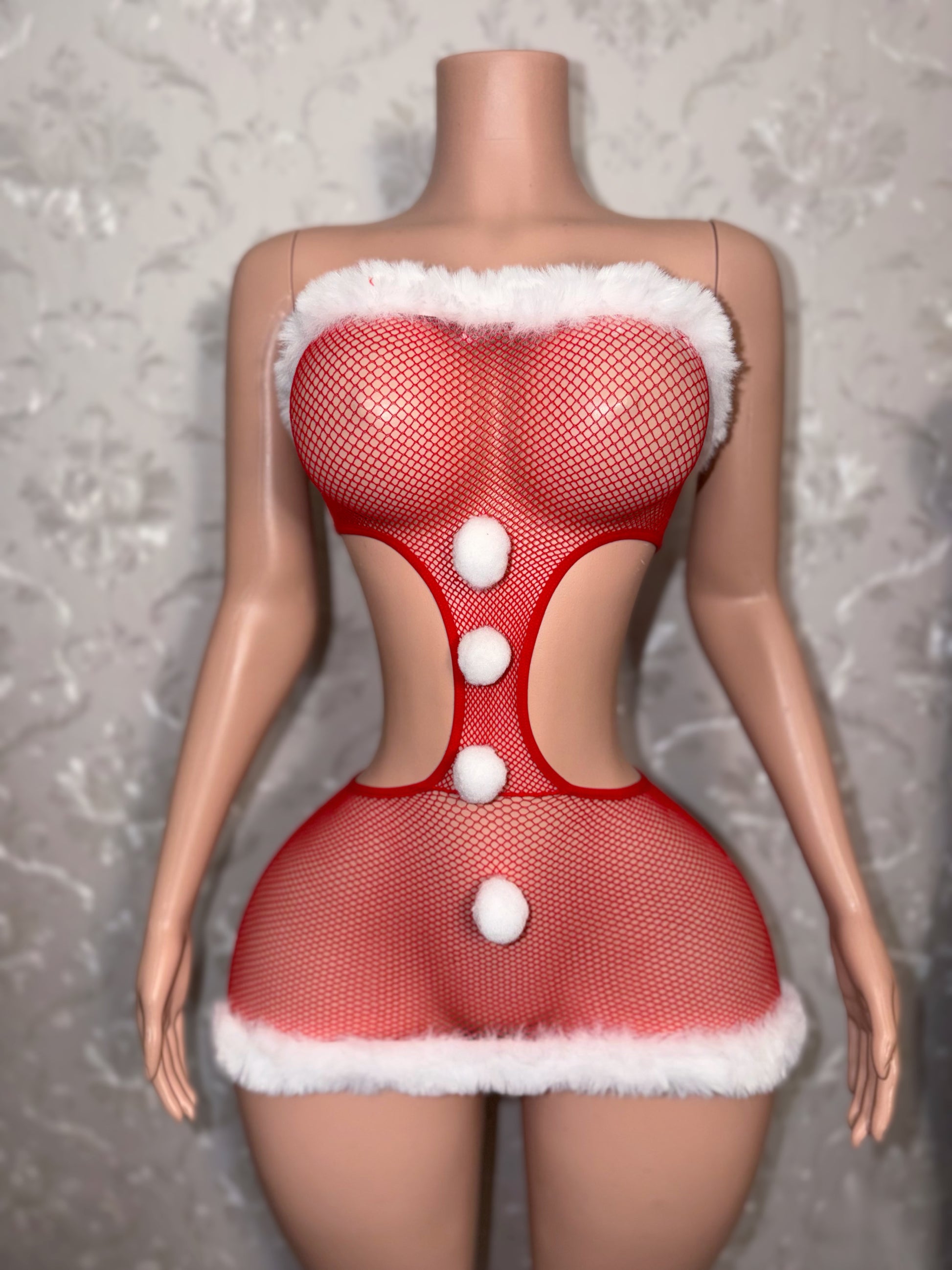 Slay Bellz — Holiday Fur Lined Fishnet Dress Fits XS-L