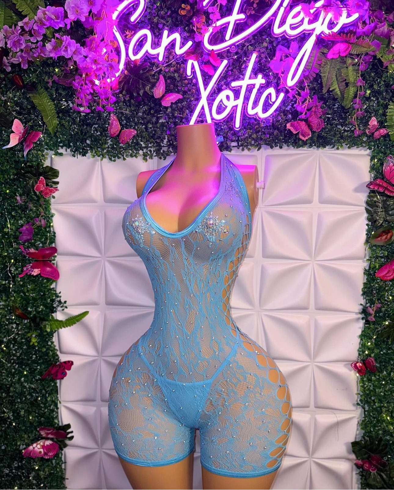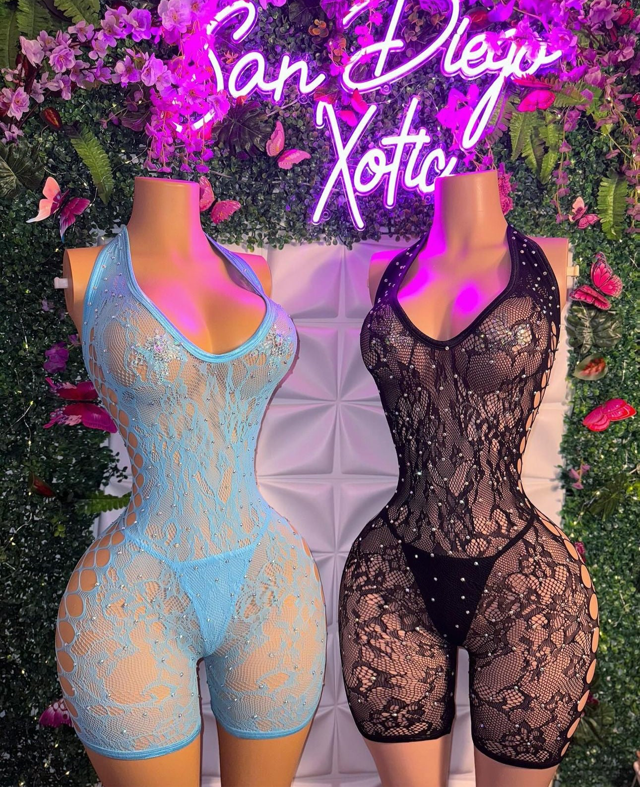 Uchies Lace Romper with Matching Thong 2 Piece Fits XS-XL
