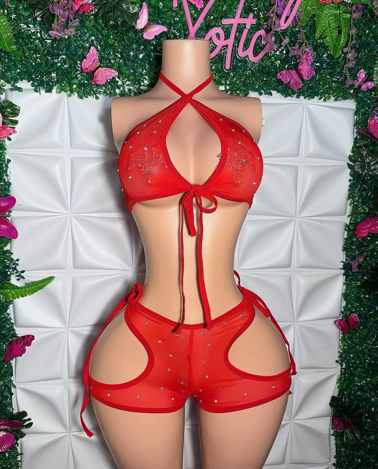 Malu Mesh 2 Piece Booty Cage Shorts Set Fits S-XL