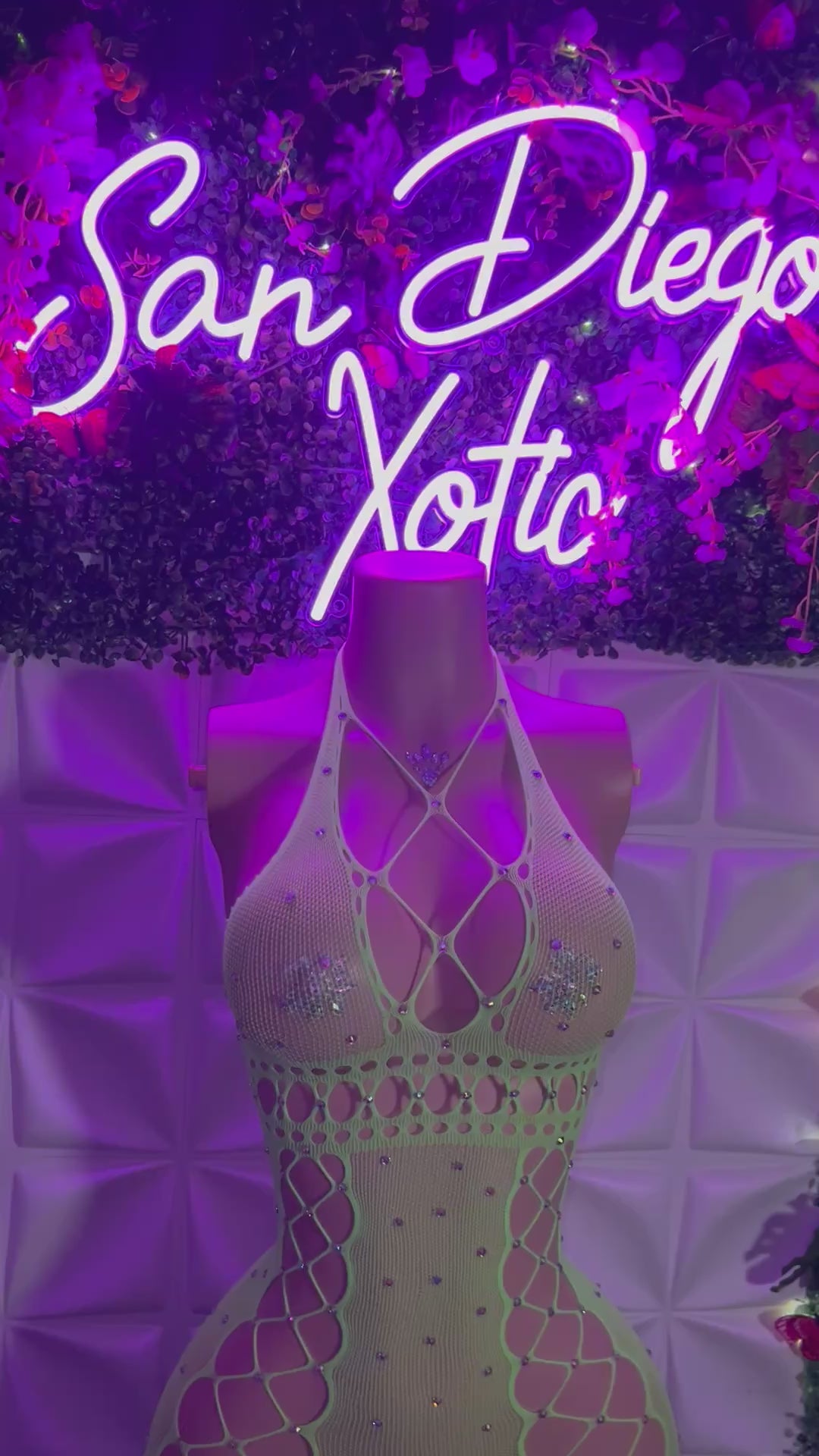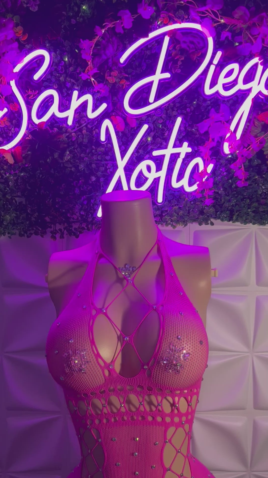 Draya Fishnet Romper with Rhinestones and Dress Fits XS-L