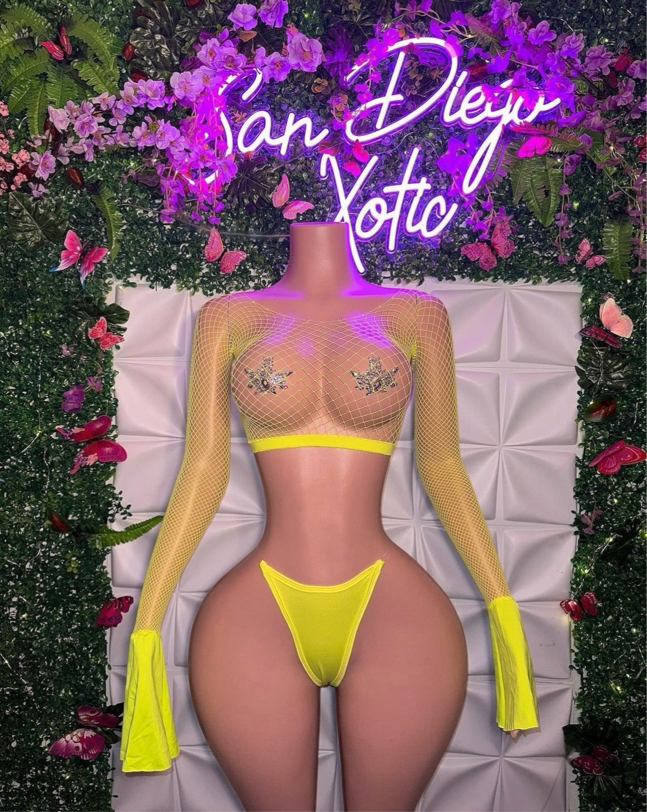 Bella Bell Sleeve Crop Top Fishnet 2 Piece Set Fits XS-L